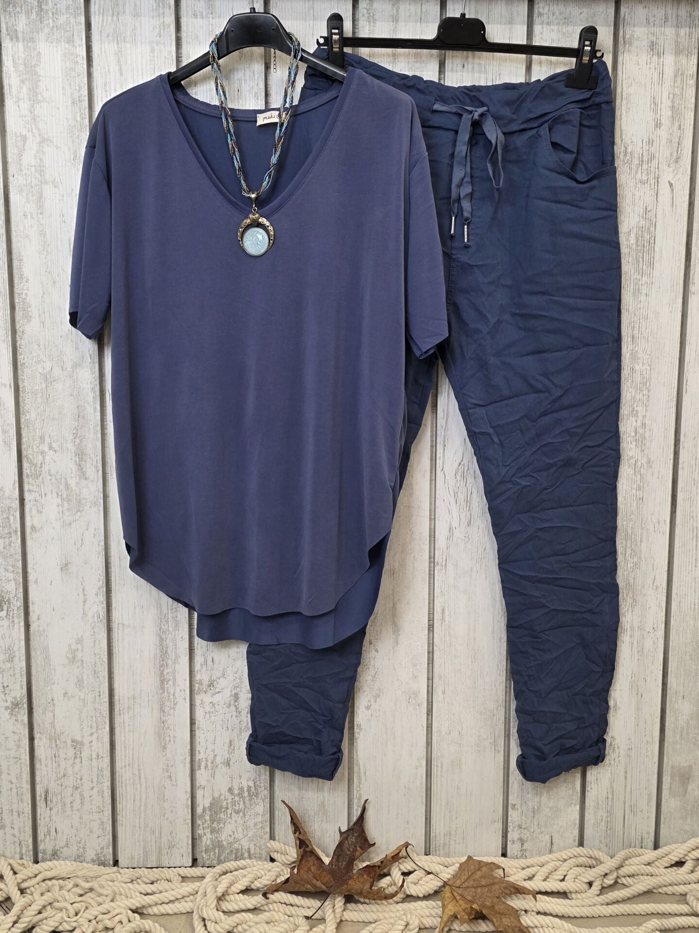 V Yaka Jarse Tişört Denim Mavi