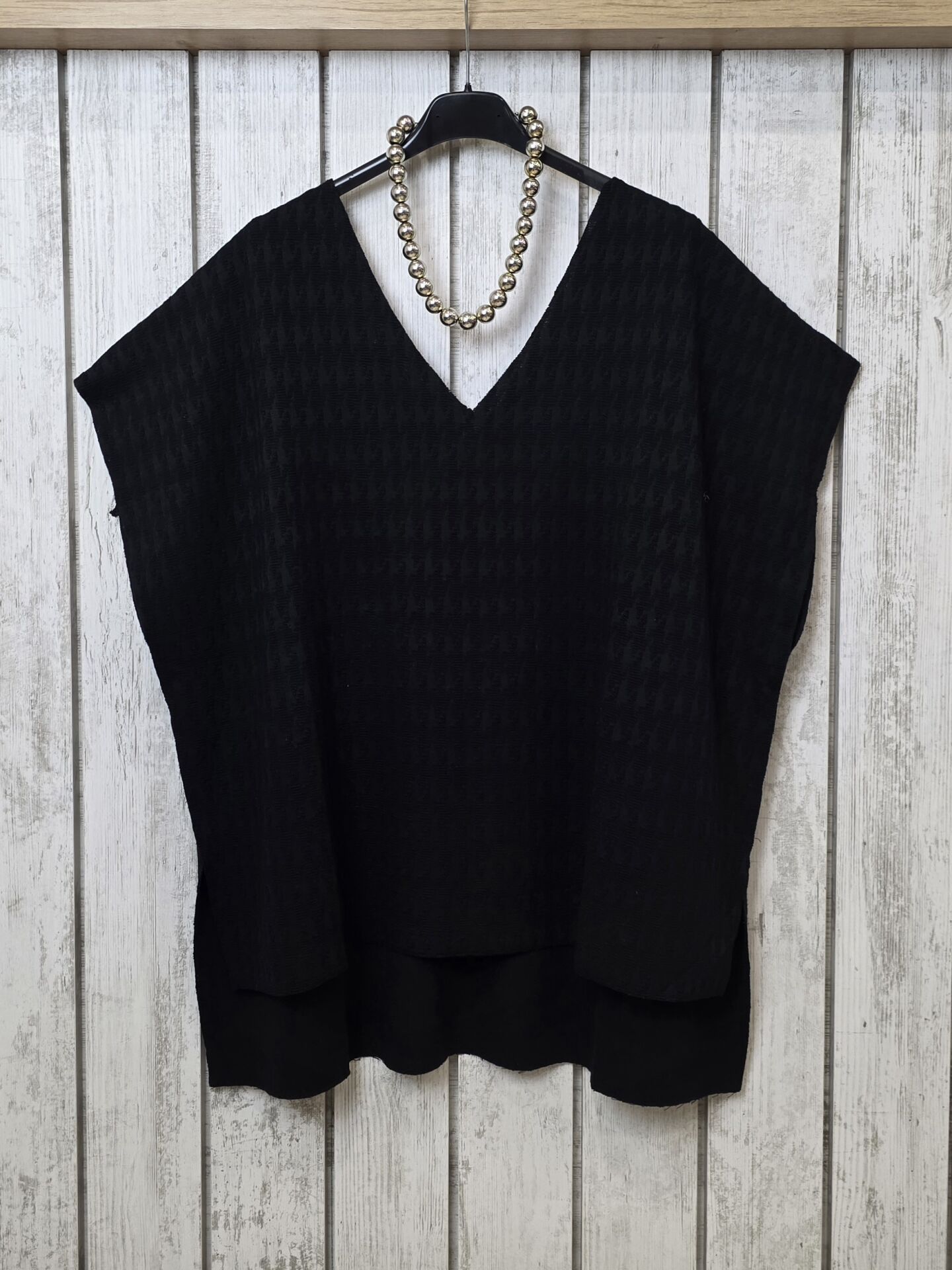 Düz kesim, yanları yırtmaçlı süveter bluz.