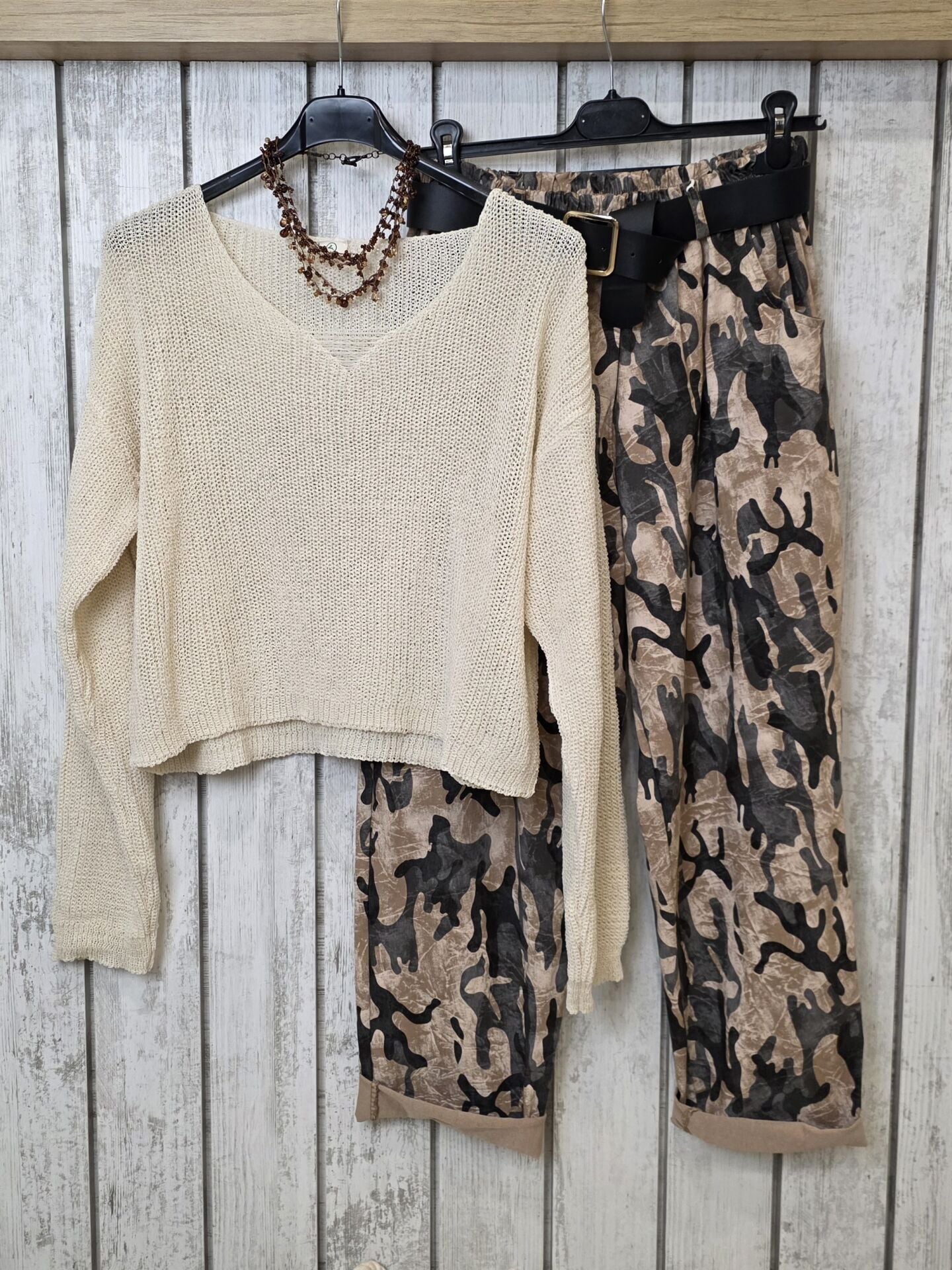 Yırtıklı Merserize Triko Ekru