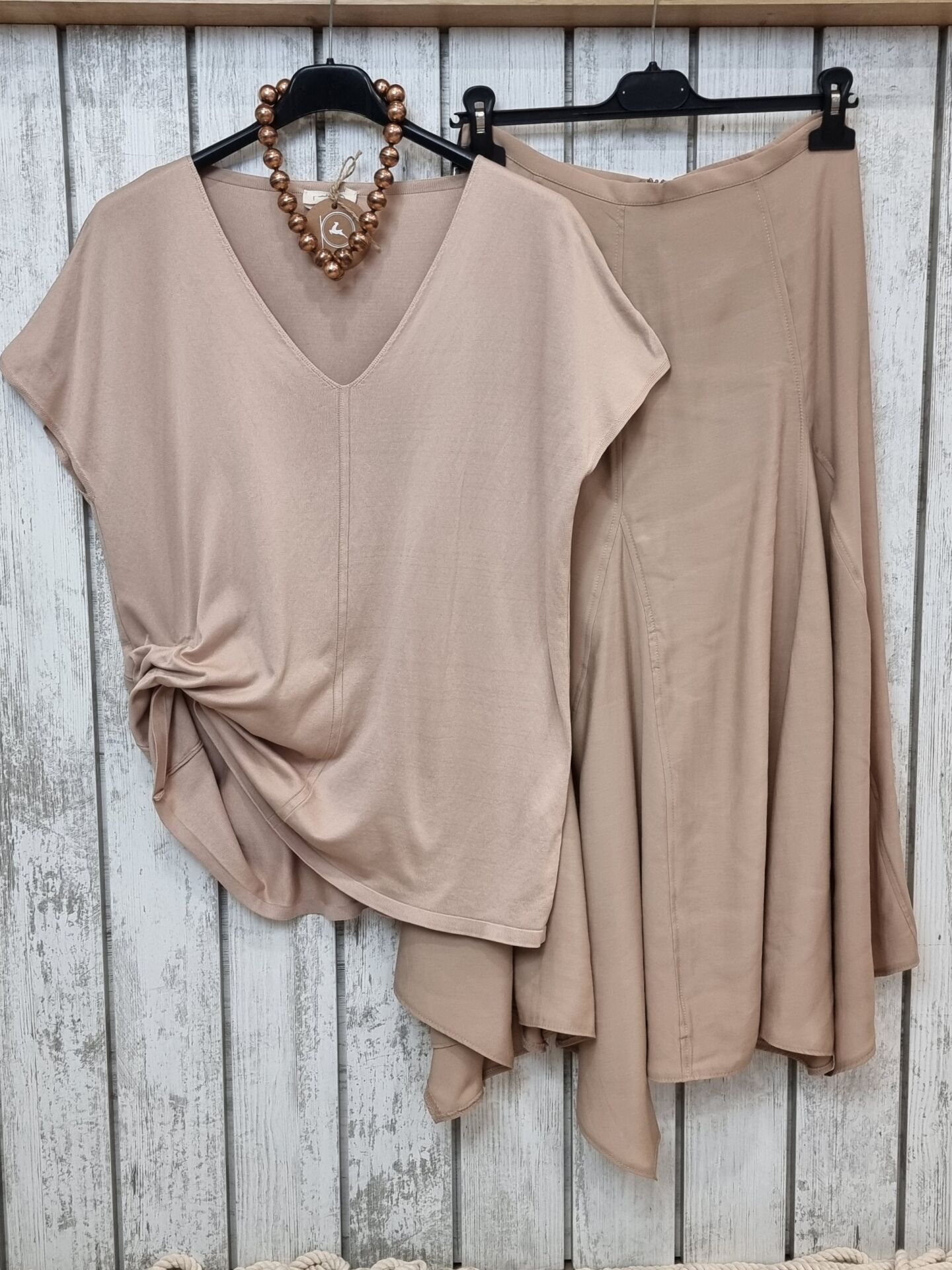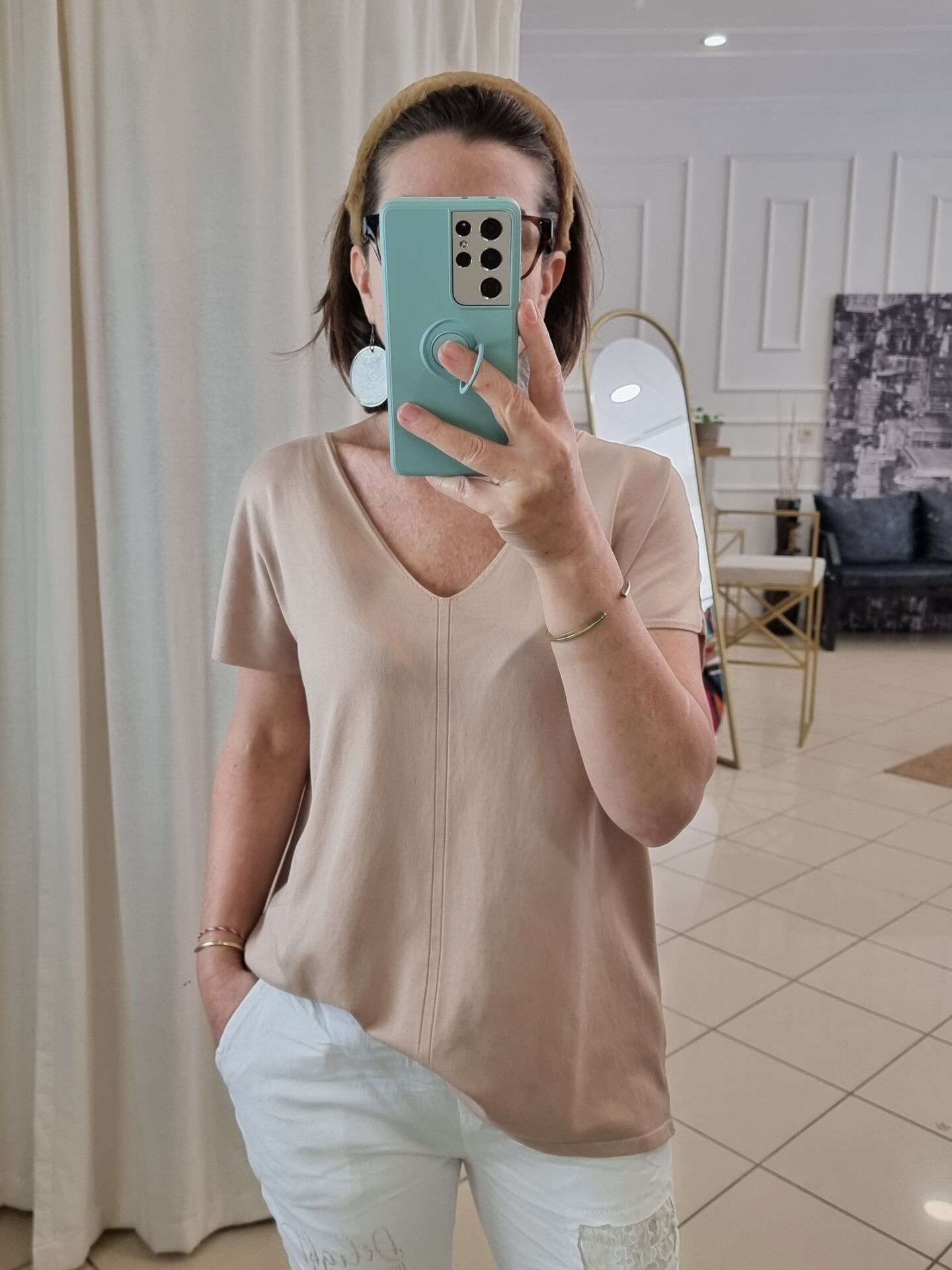 Soğuk ip triko yumuşacık dökümlü V yaka triko tişört.