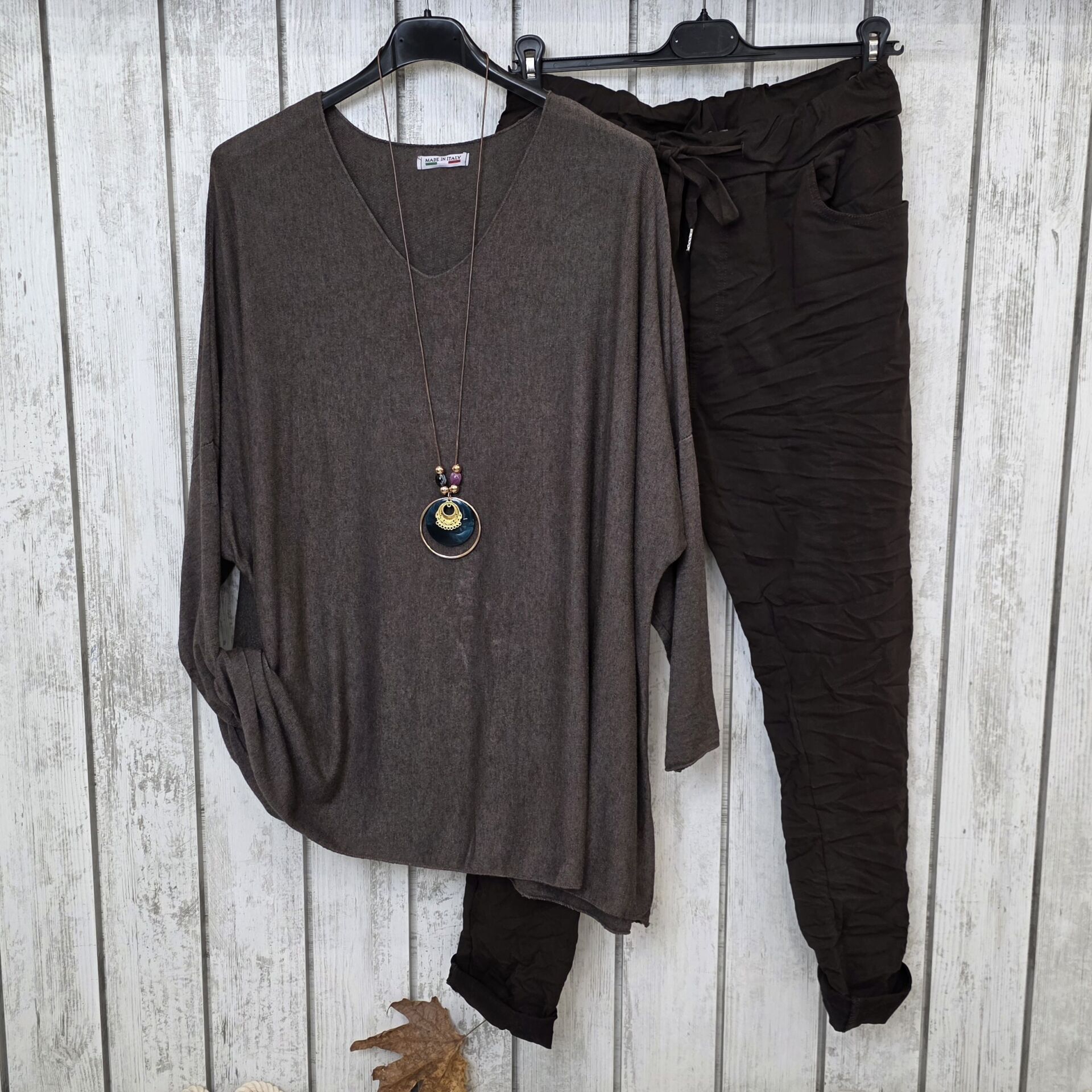 Düz Kesim V Yaka İtalyan Kahverengi Kazak