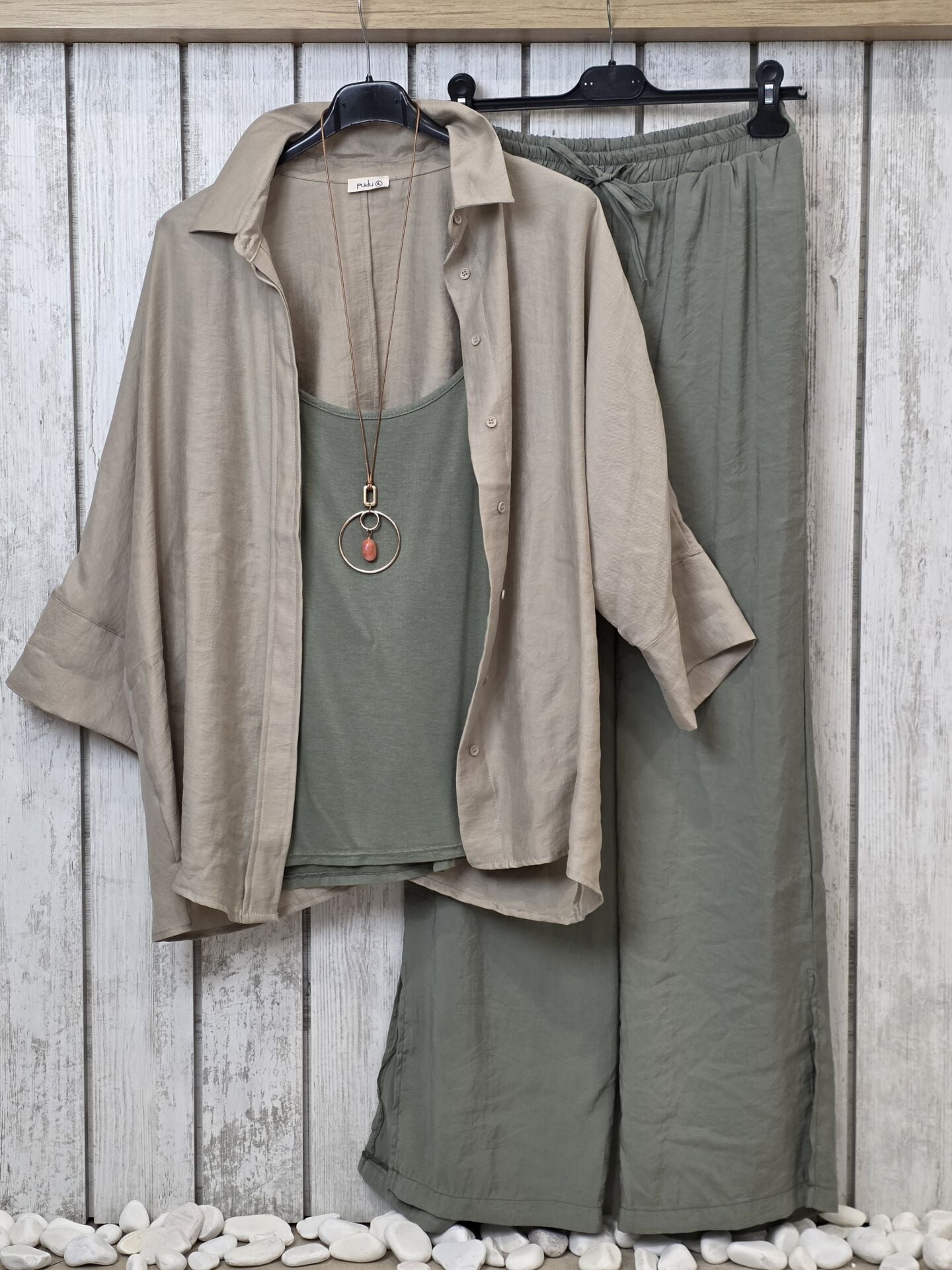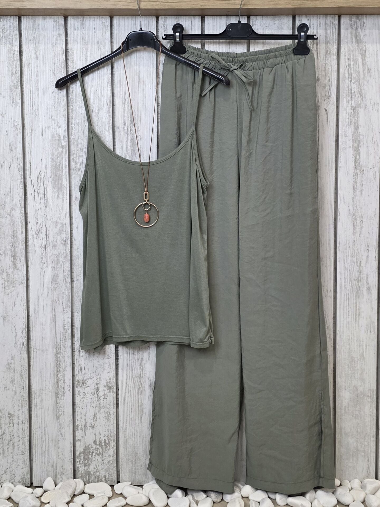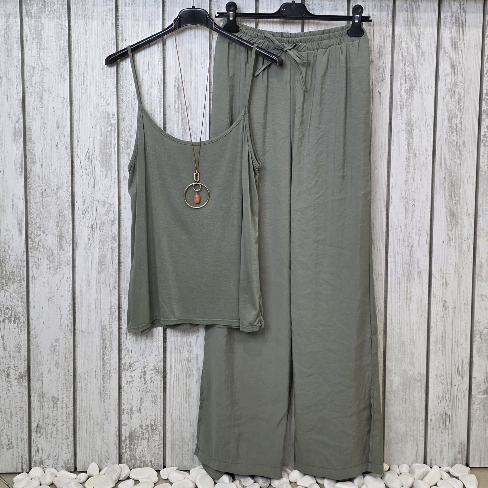İnce askılı İtalyan viskon haki atlet.