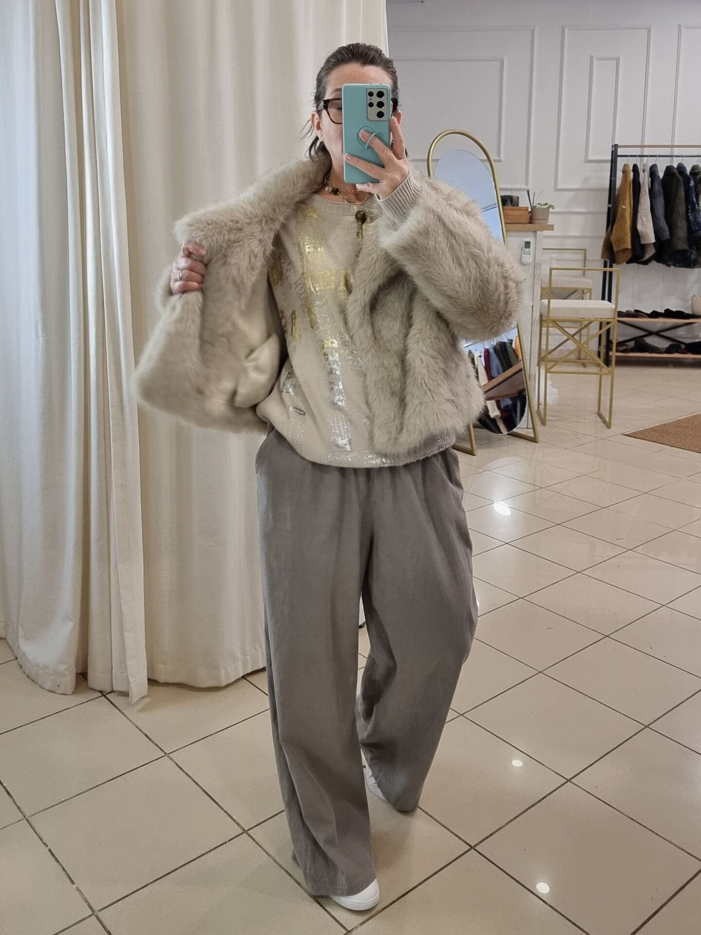 İçi nubuk dokulu kaliteli kürk mont, soğuk kış günlerinde sıcaklık ve şıklığı bir araya getirir. Vizon kürk detaylarıyla zarif bir görünüm sunar. Cepli ve önü çıt çıtlı tasarımı, hem pratik hem de modern bir kullanım sağlar.