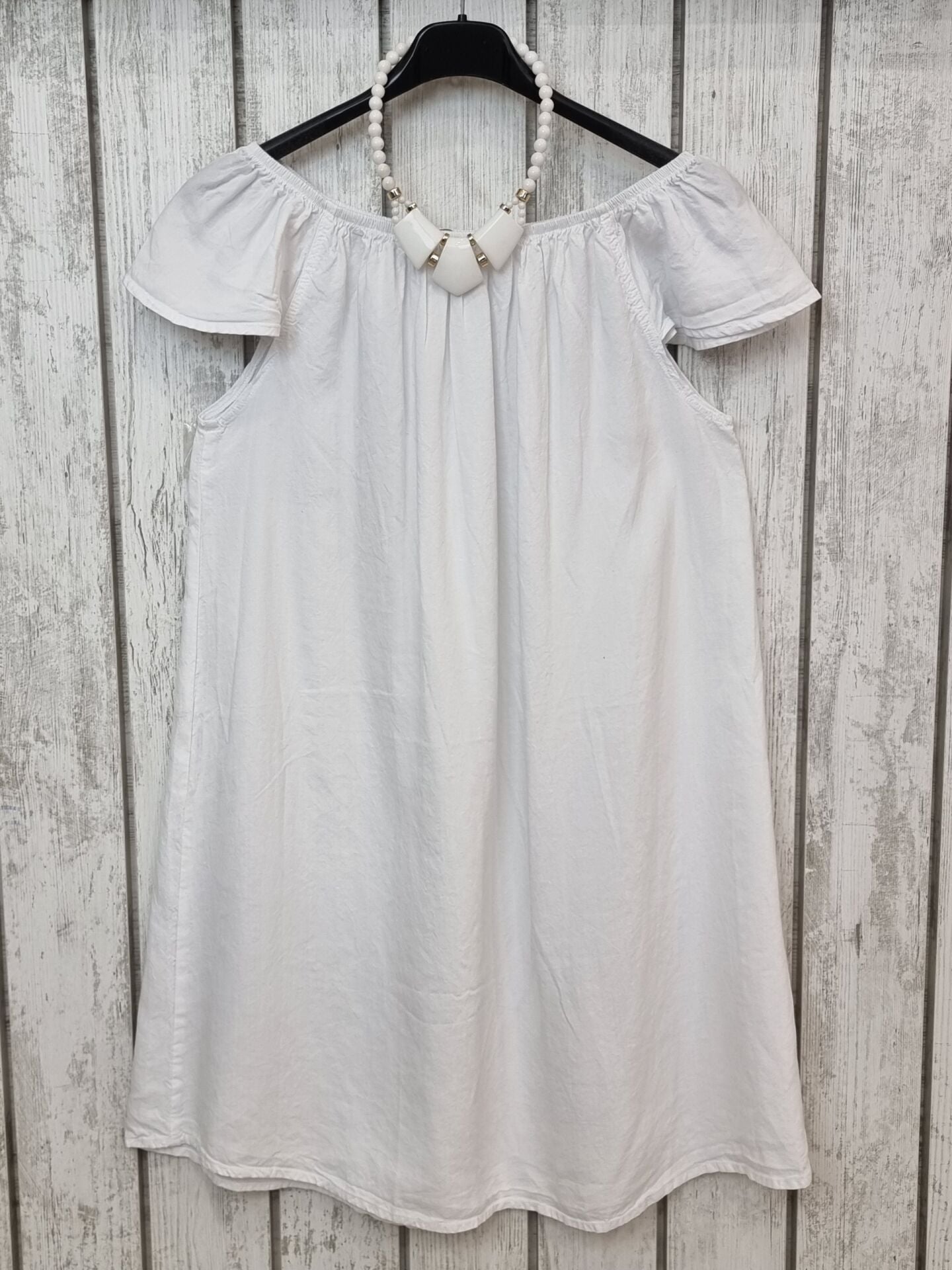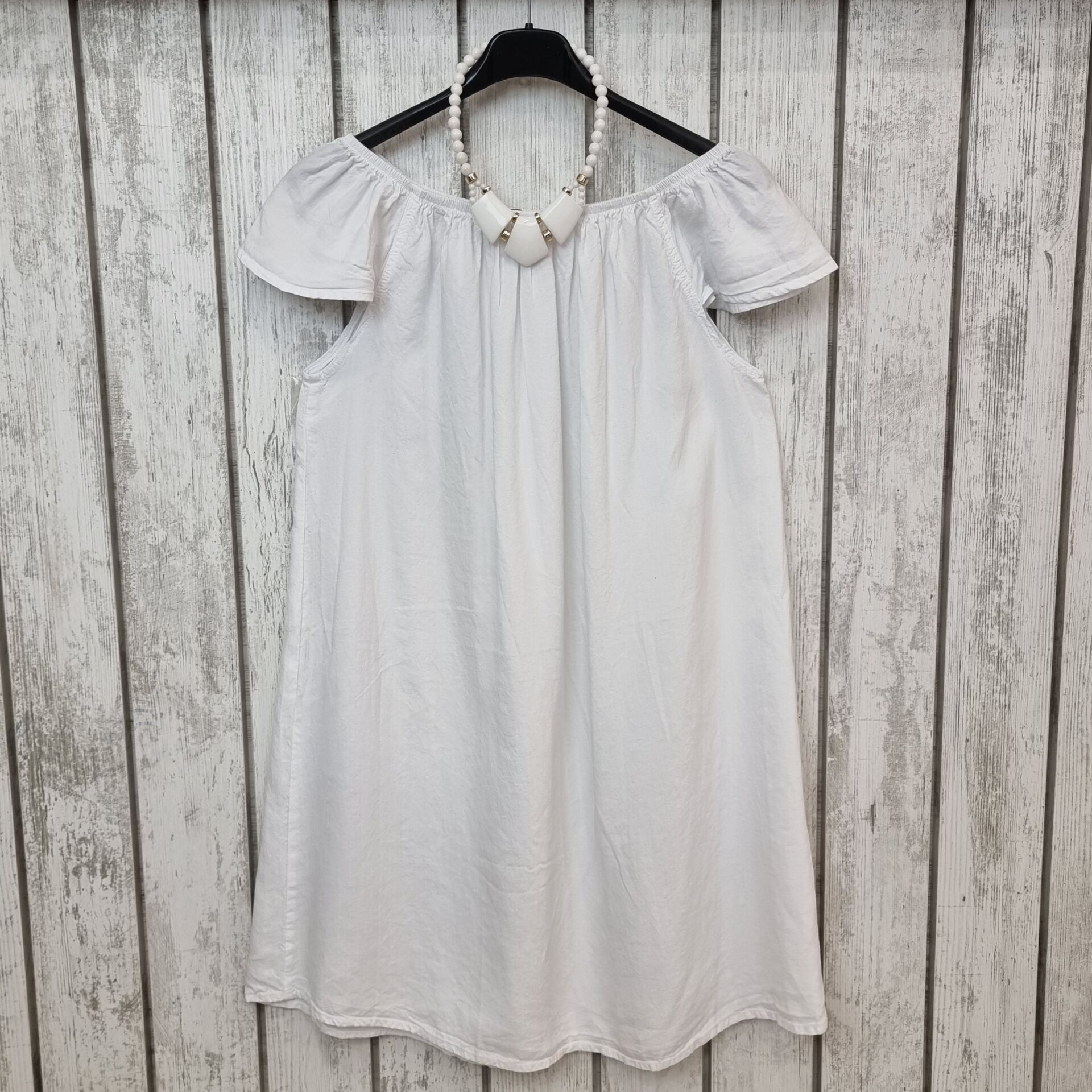 Yakası Lastikli Tencel Beyaz Elbise
