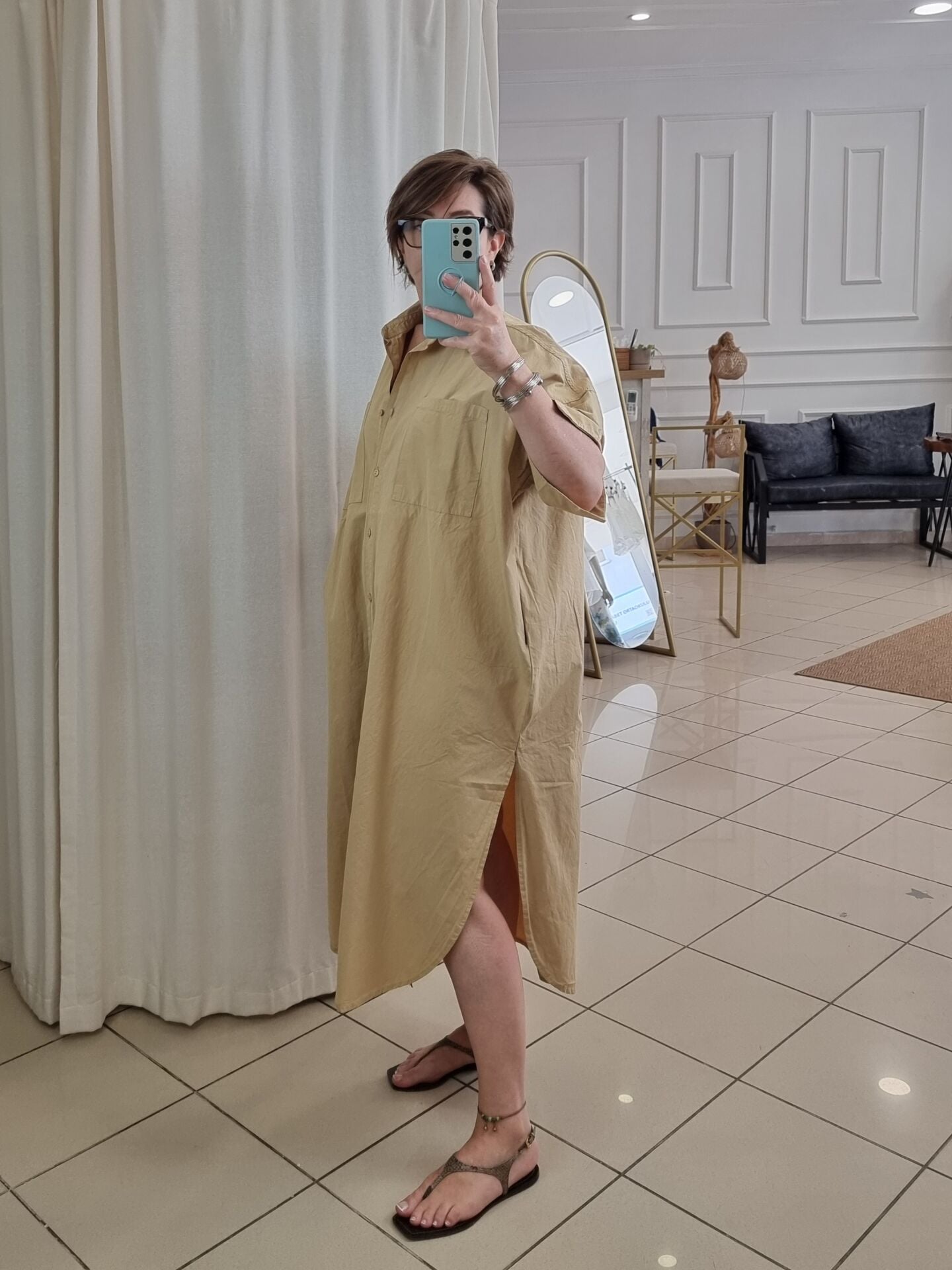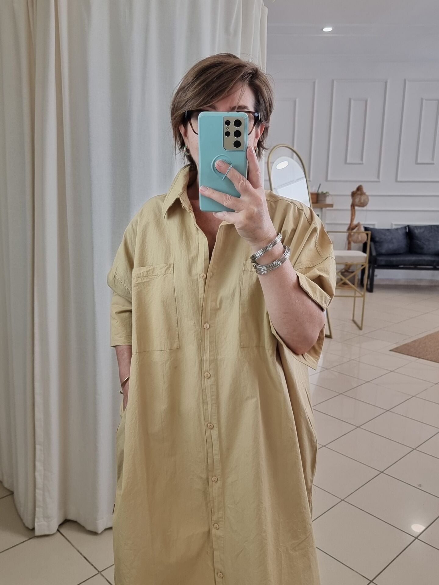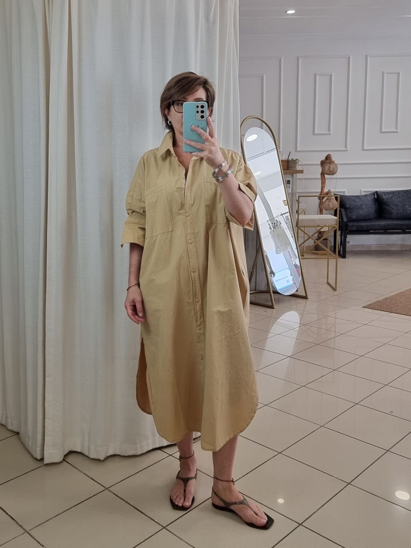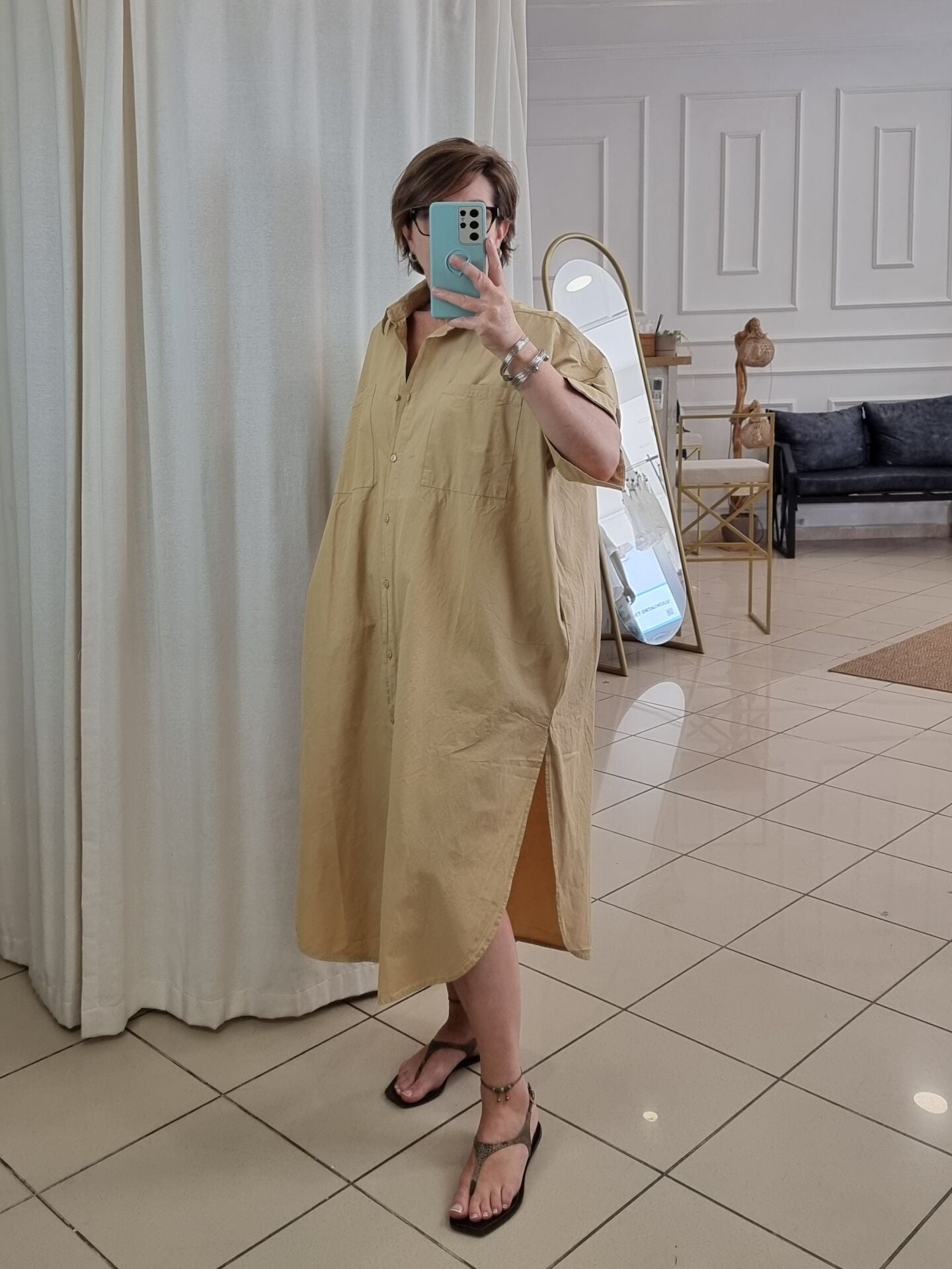 Bol kesim saten poplin gömlek elbise.