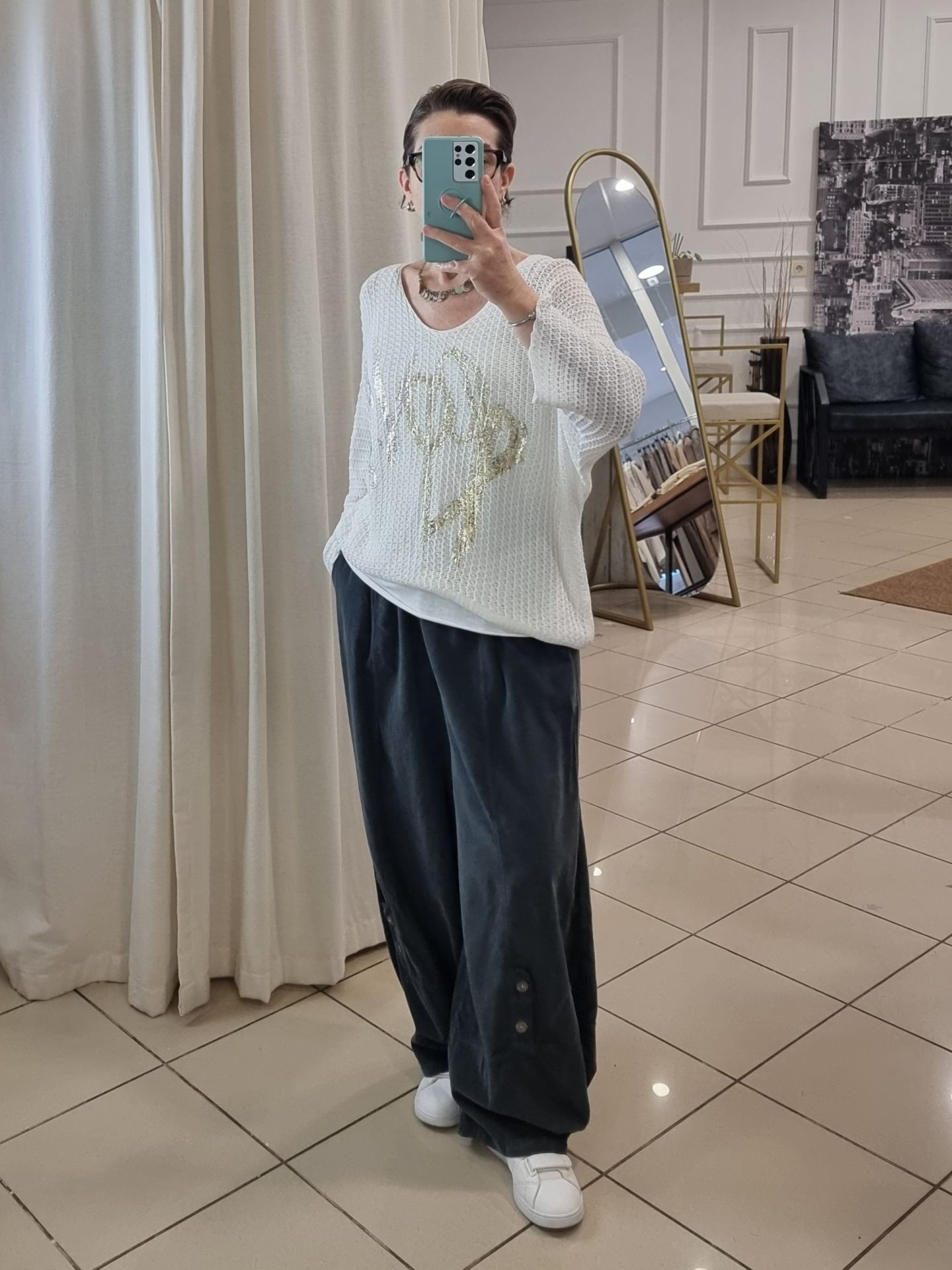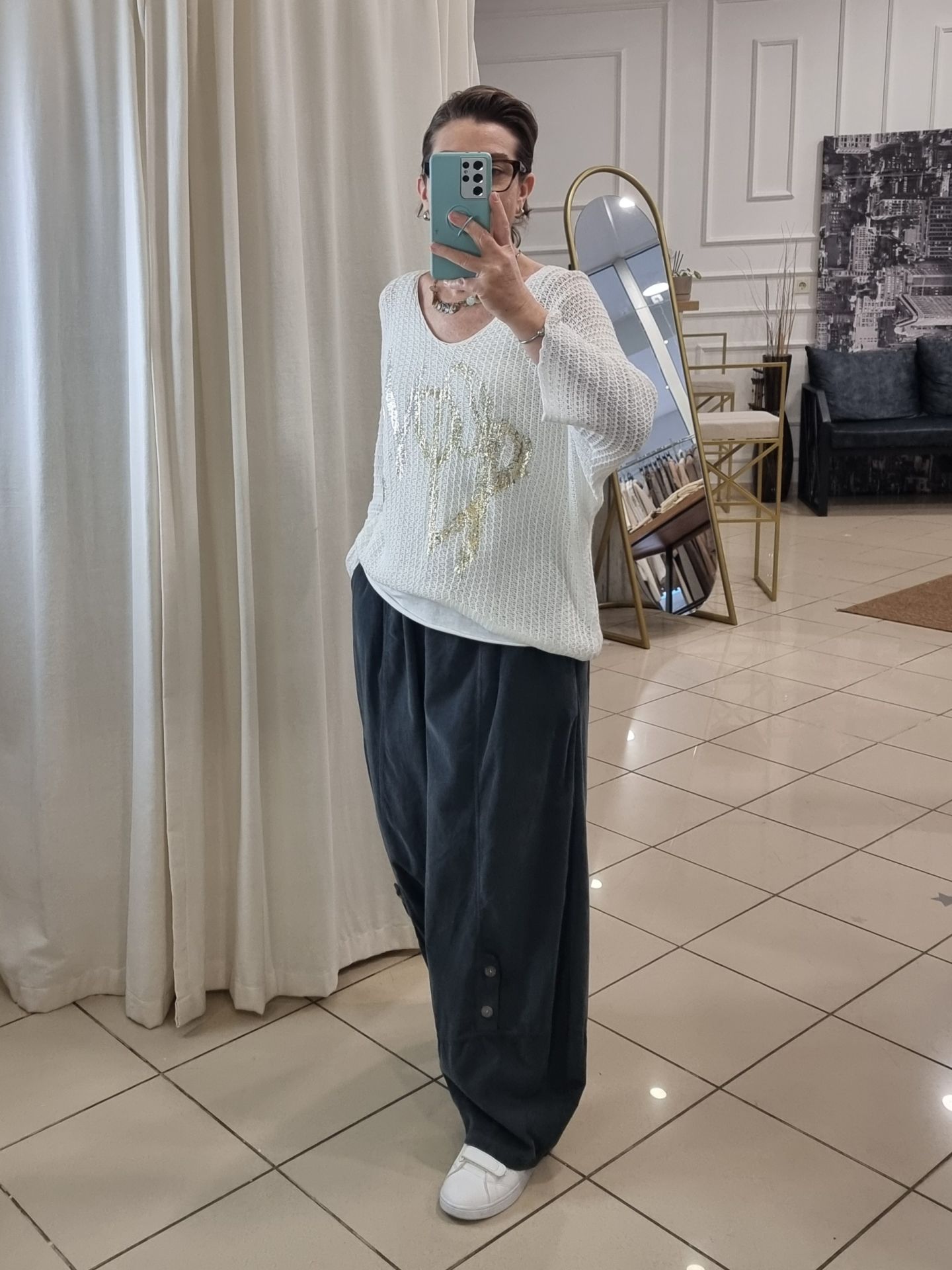 Antrasit rengi şalvar pantolon, kadınlara özel konfor ve zarif bir stil sunar. Şalvar pantolon, bol kesimi ve beli lastikli yapısıyla rahatlık arayanlar için ideal bir tercihtir. Hem gündelik kullanımda hem de şık kombinlerde kullanılabilir.