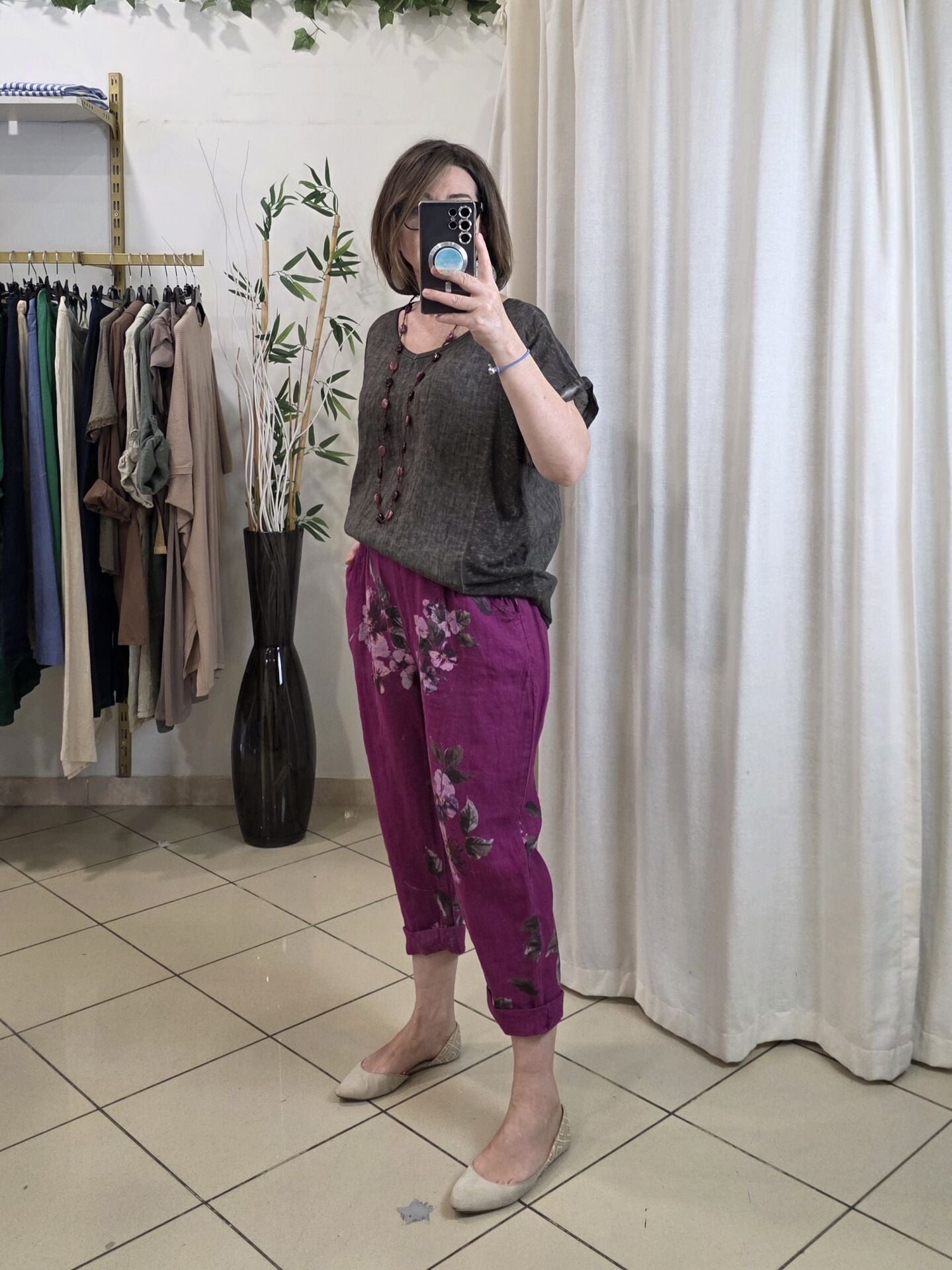 %100 keten İtalyan bluz.