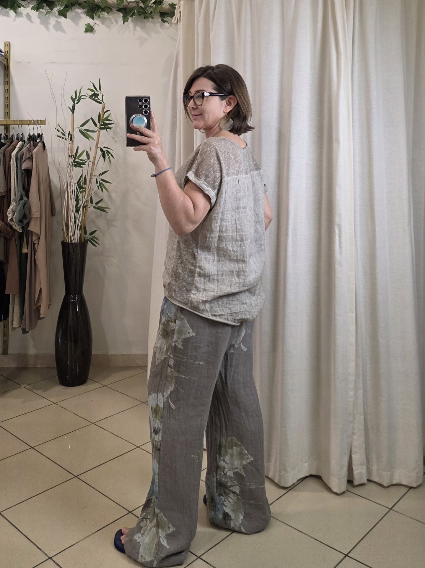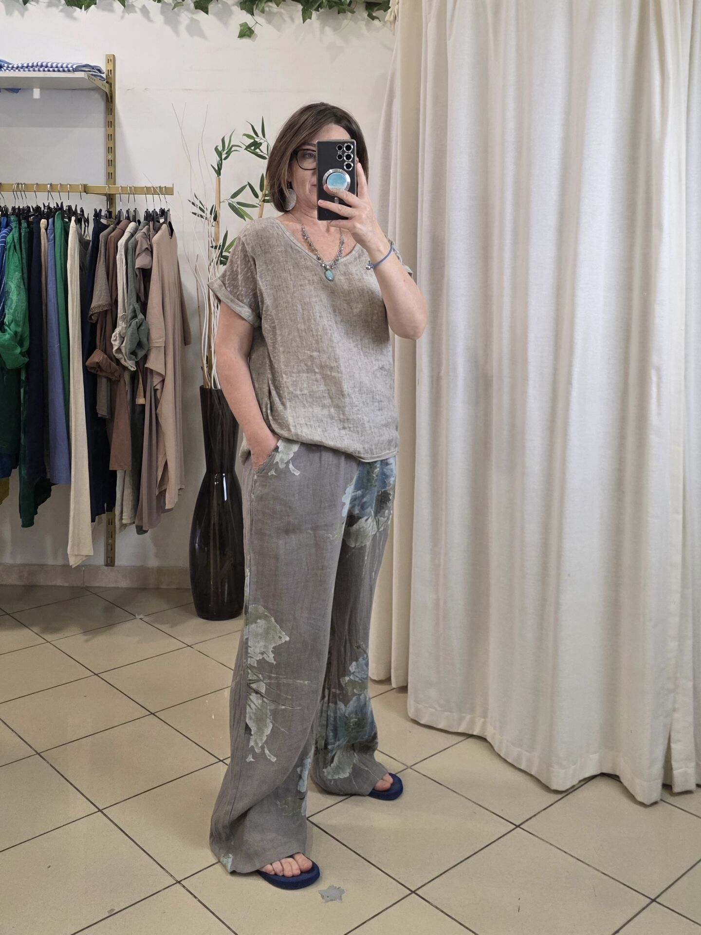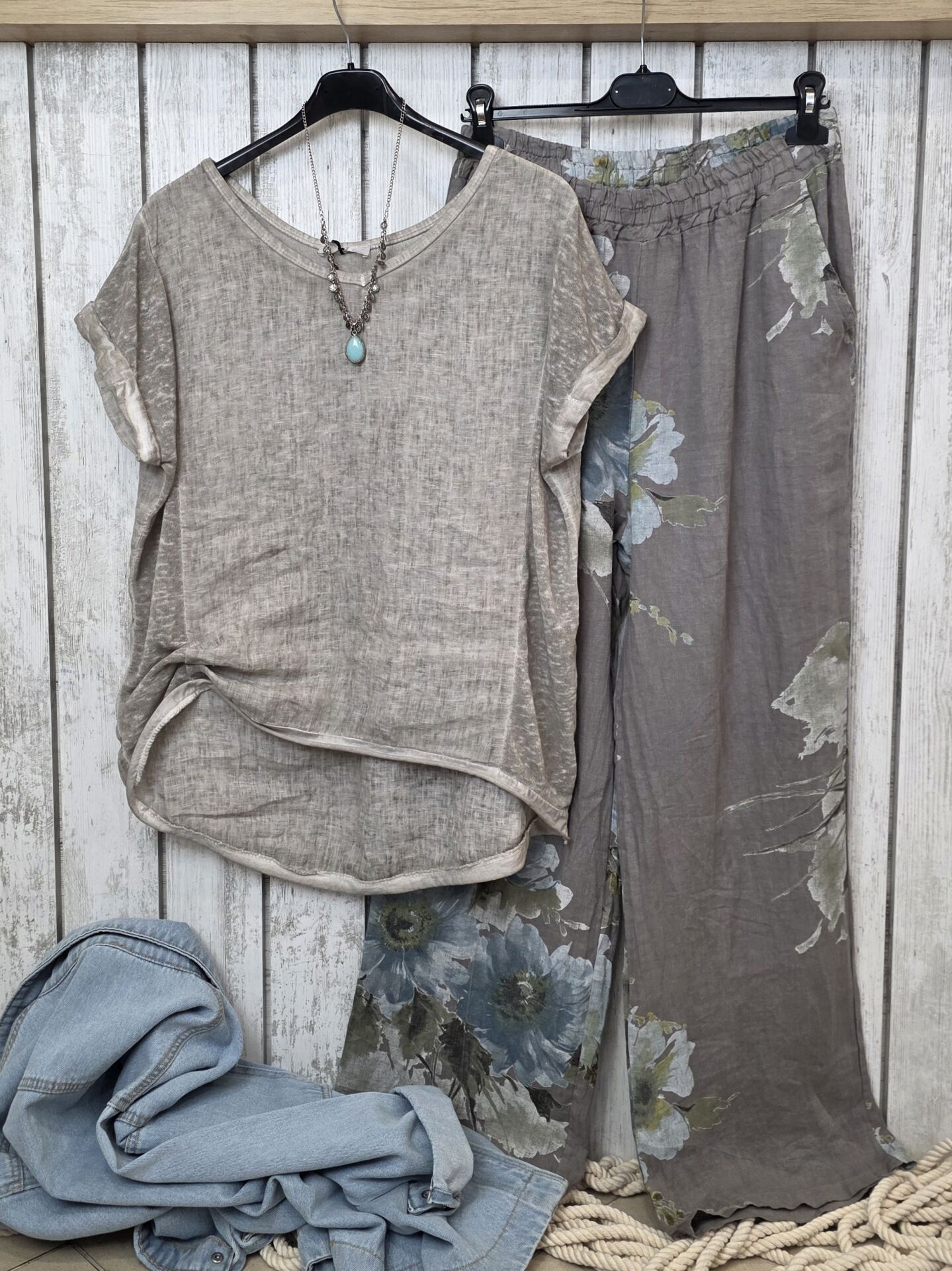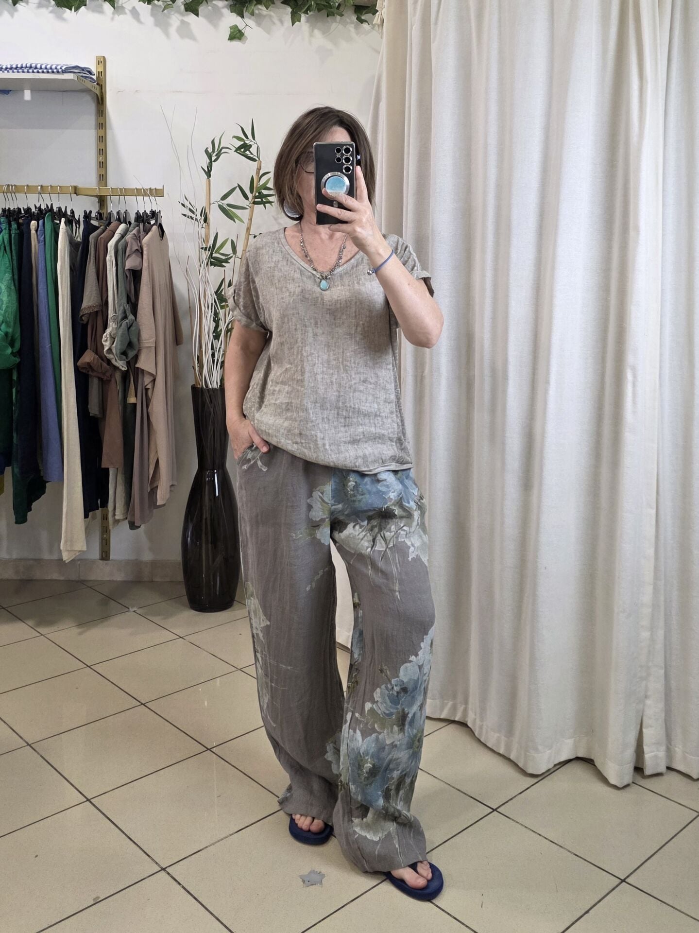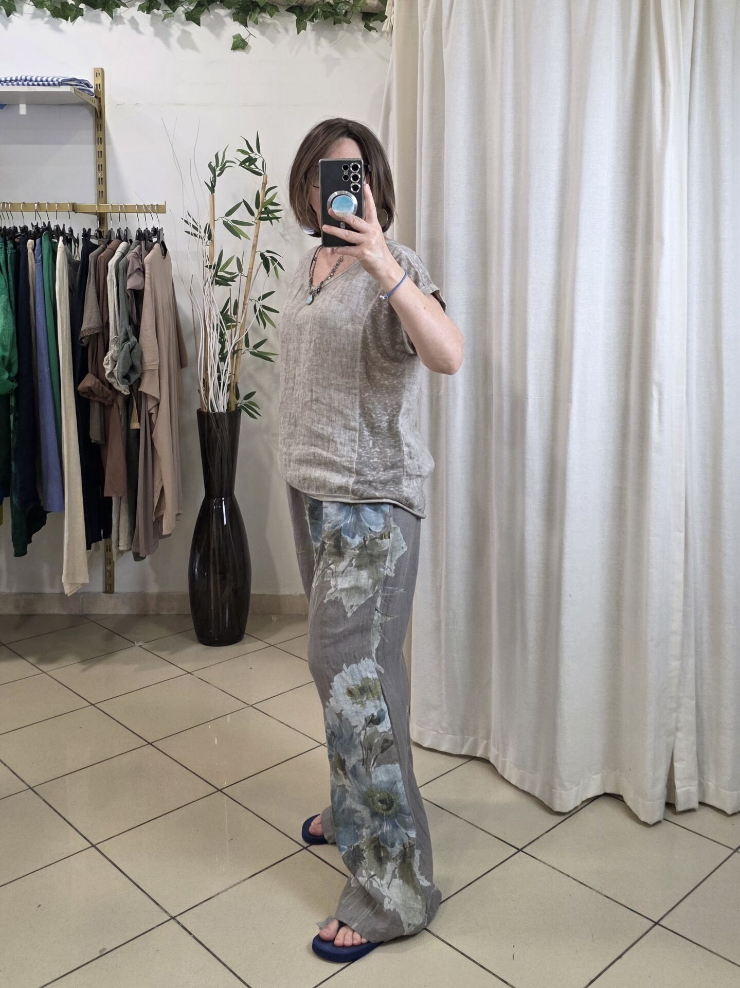 %100 keten İtalyan bluz.