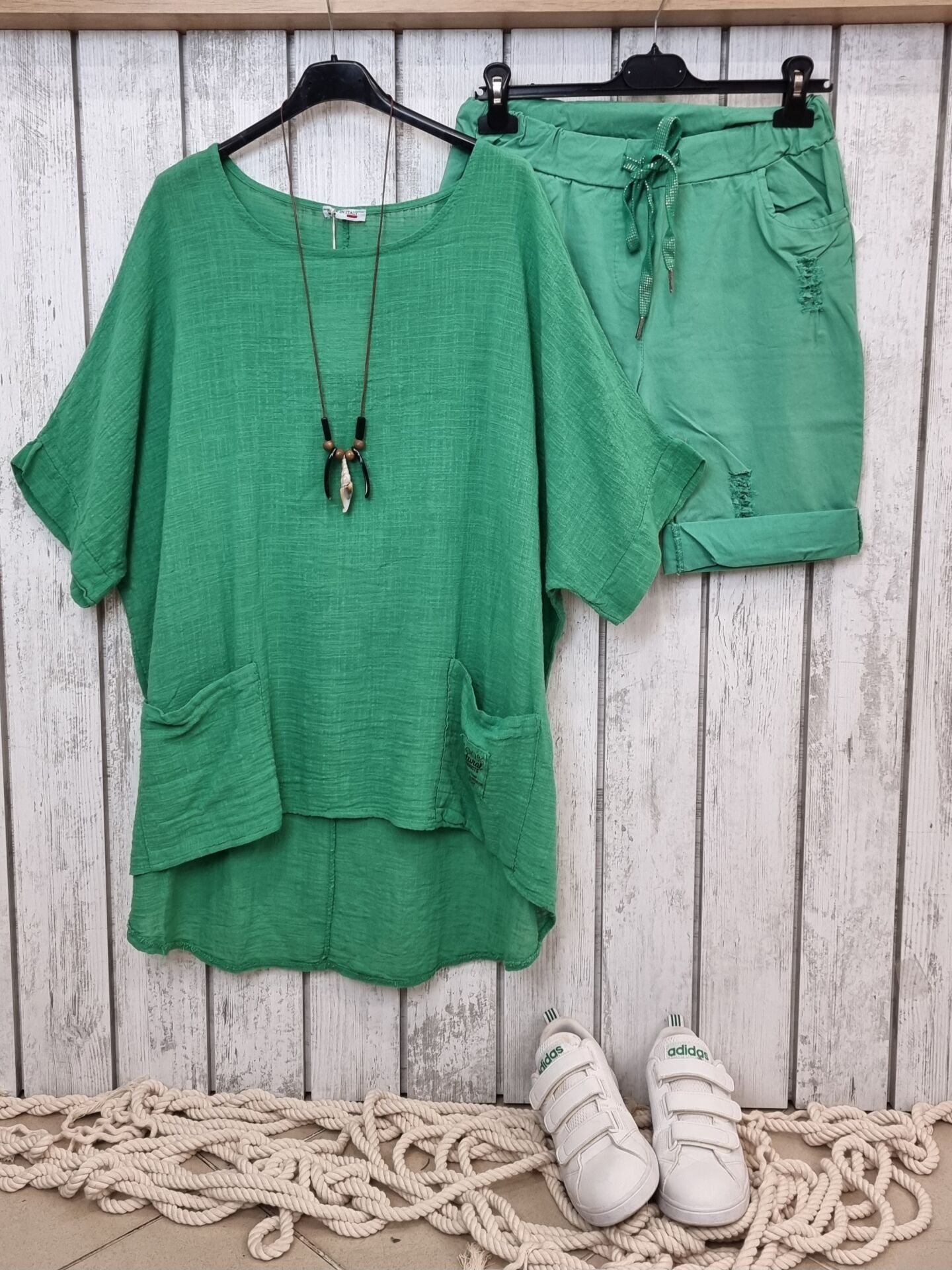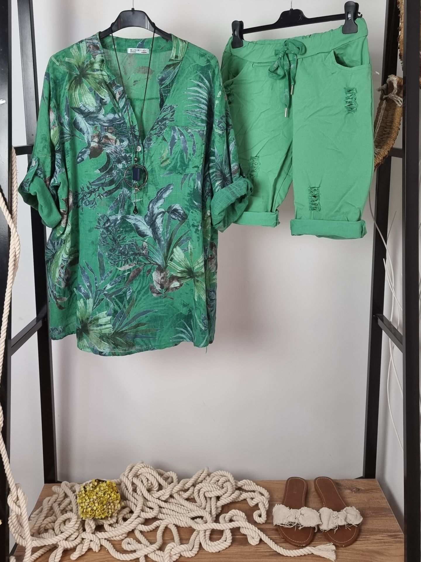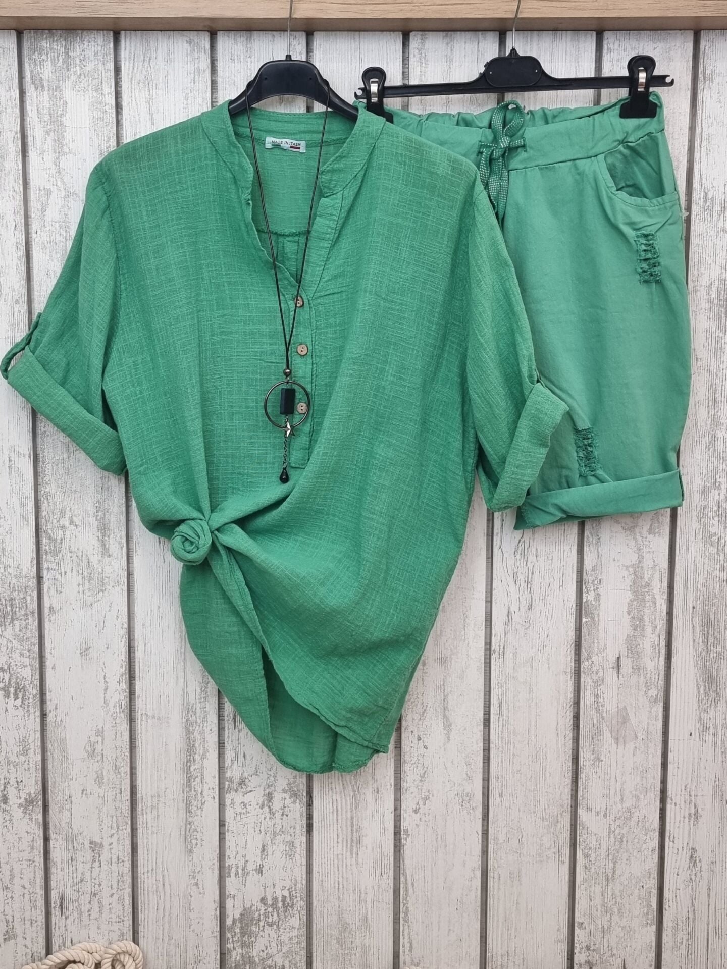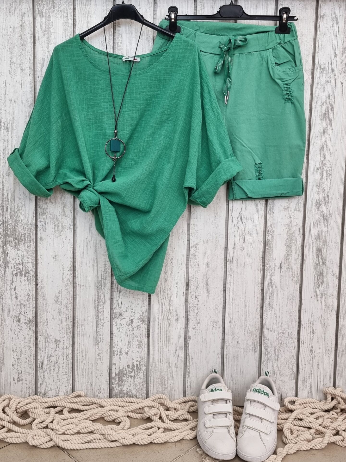 Yırtıklı Likralı İtalyan Yeşil Bayan Şort