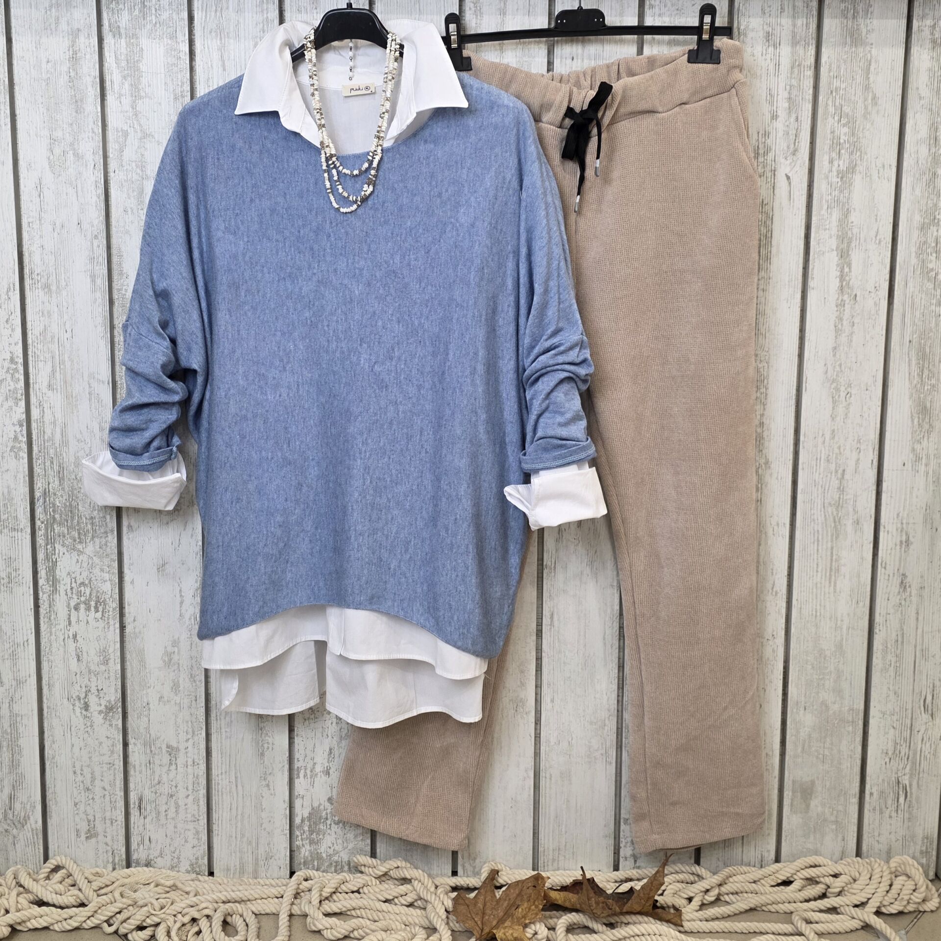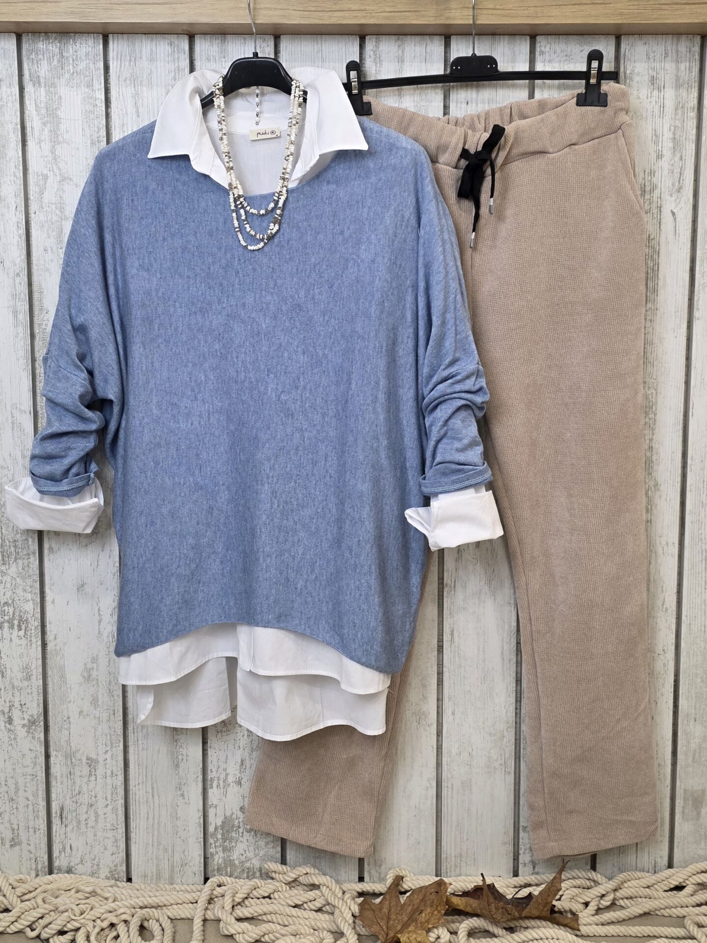 Yumuşak dokulu bu mavi İtalyan triko kazak, sadeliği konforla harmanlayan kadınlar için tasarlandı. İnce yapısı sayesinde hem tek başına hem de katmanlı kombinlerde rahatlıkla kullanılabilir. Oversize kalıbı hareket özgürlüğü sunarken, canlı mavi tonu ile gardıroba enerjik bir dokunuş katar. Günlük şıklığı konforla buluşturan bu kazak, mevsim geçişlerinde vazgeçilmez bir parça olmaya aday. Şıklığını abartmadan göstermek isteyen her kadın için güçlü ve zahmetsiz bir alternatif.