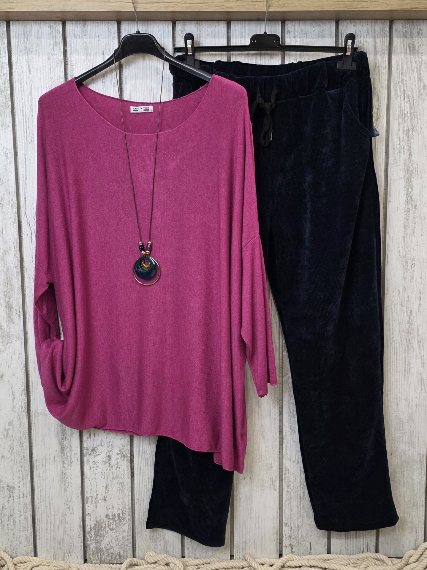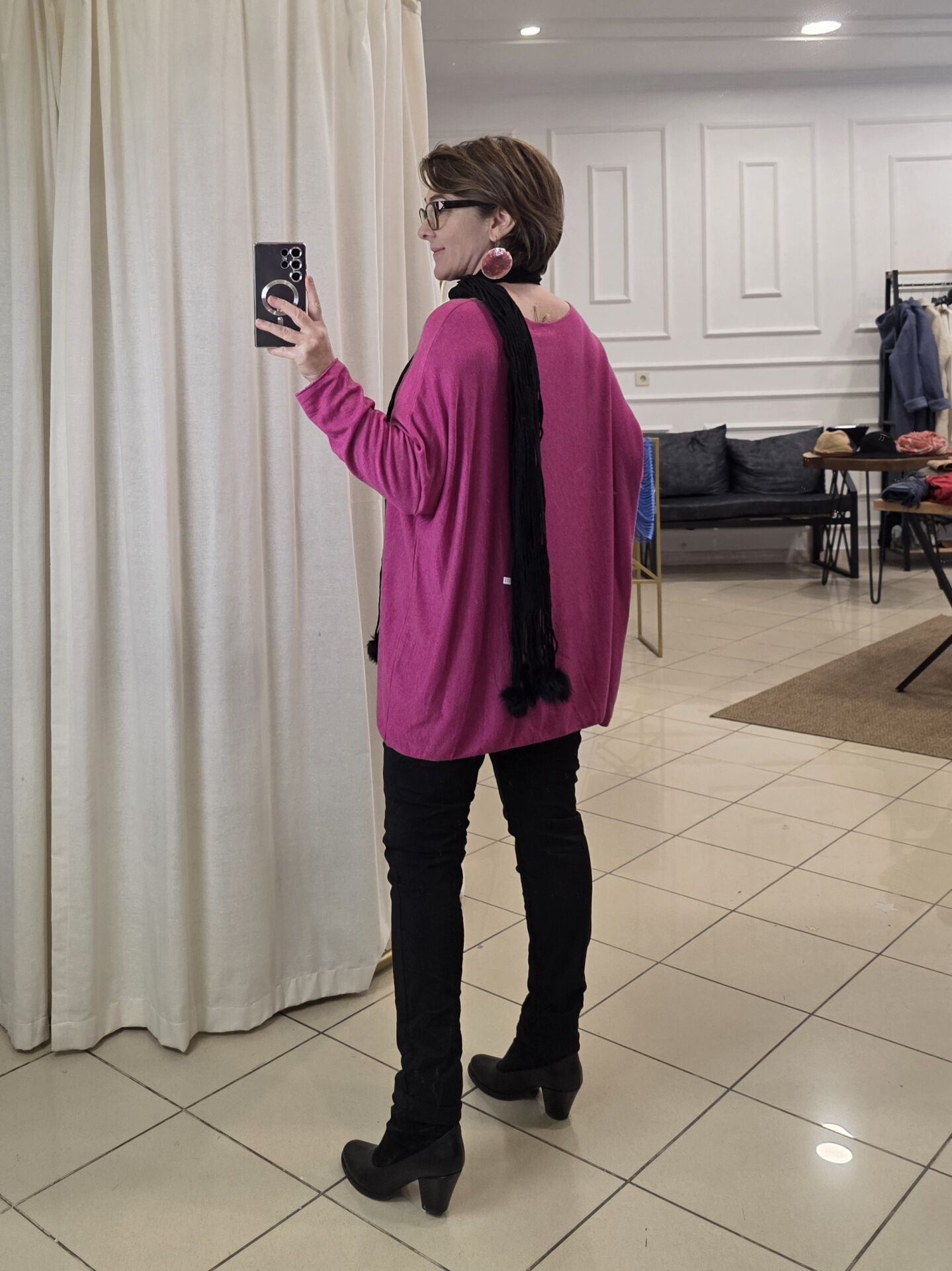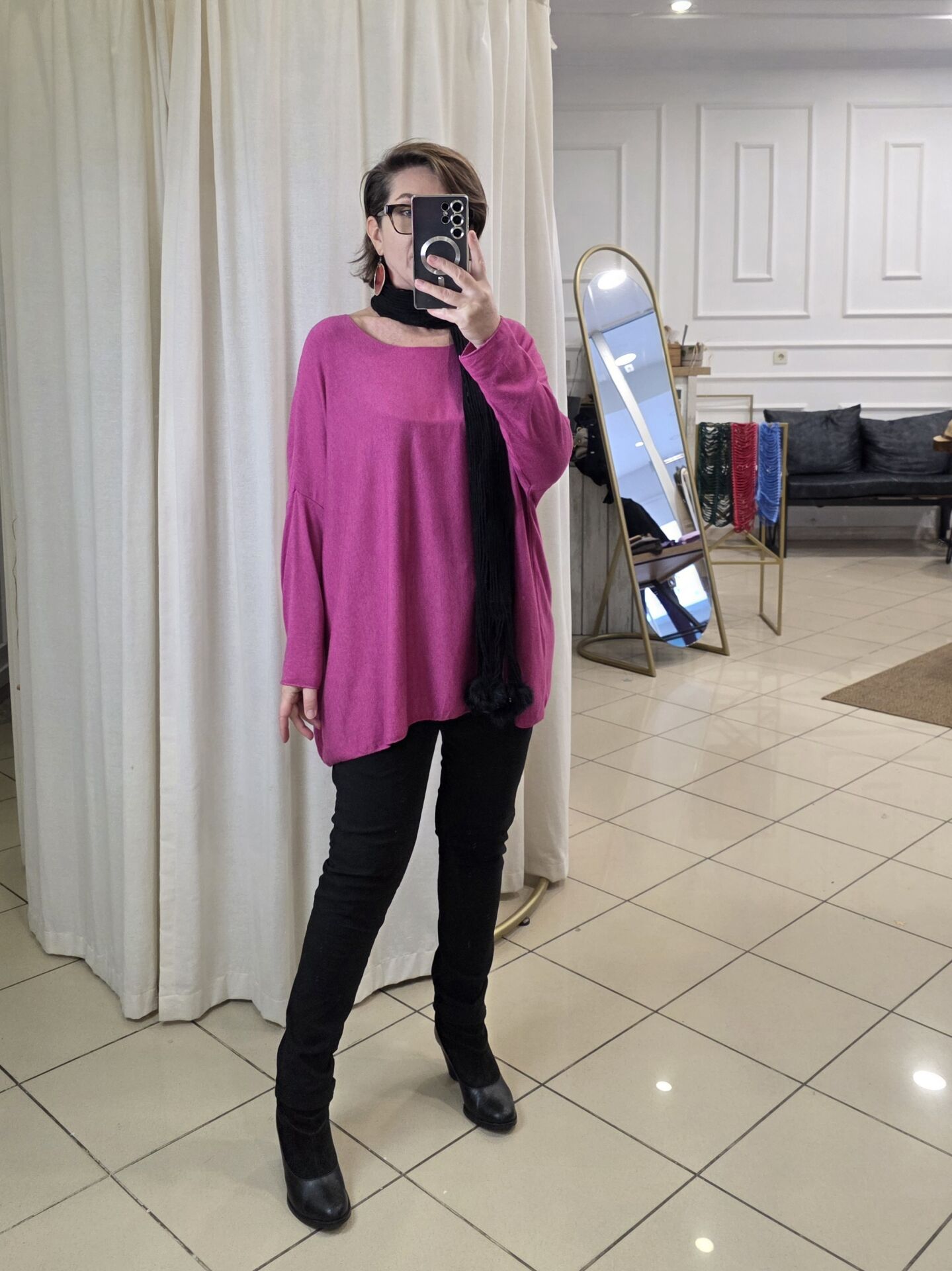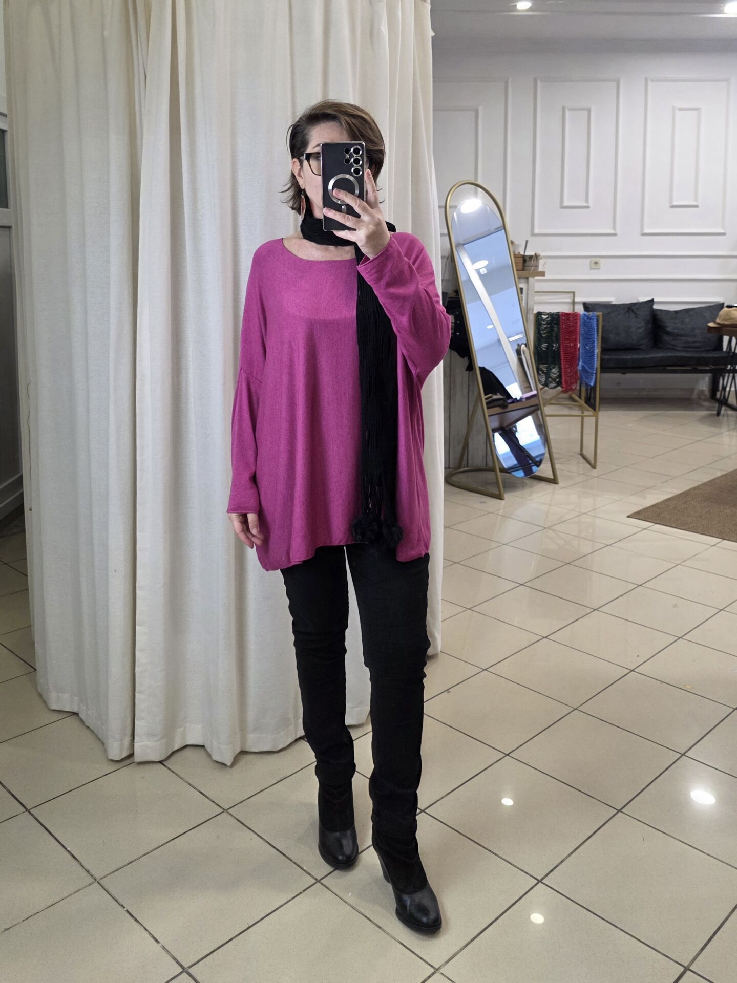 Fuşya Yumuşak Doku Düz Kesim İtalyan Triko Kazak