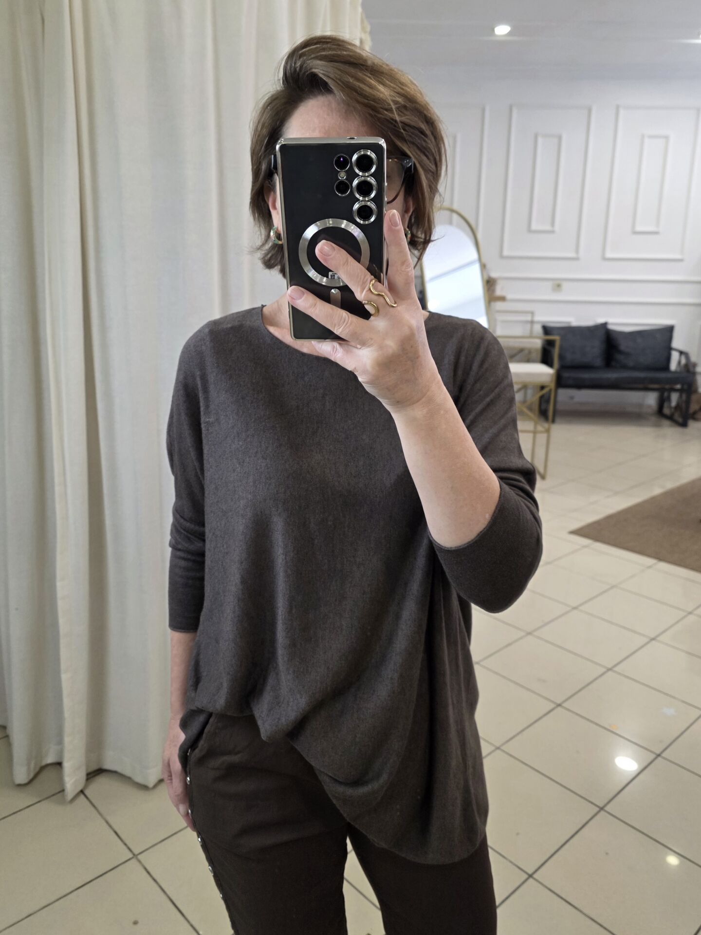 Kahverengi Yumuşak Doku Düz Kesim İtalyan Triko Kazak