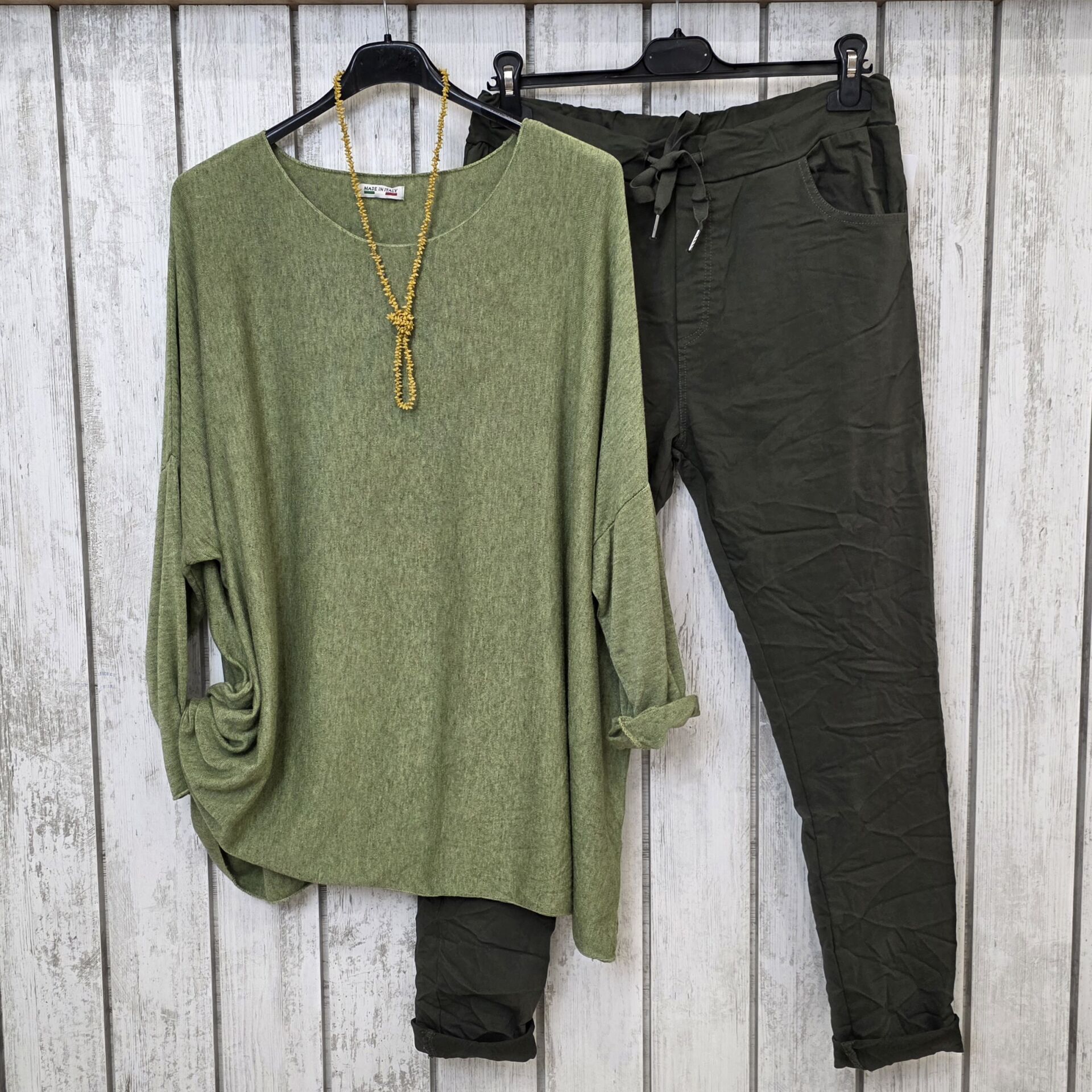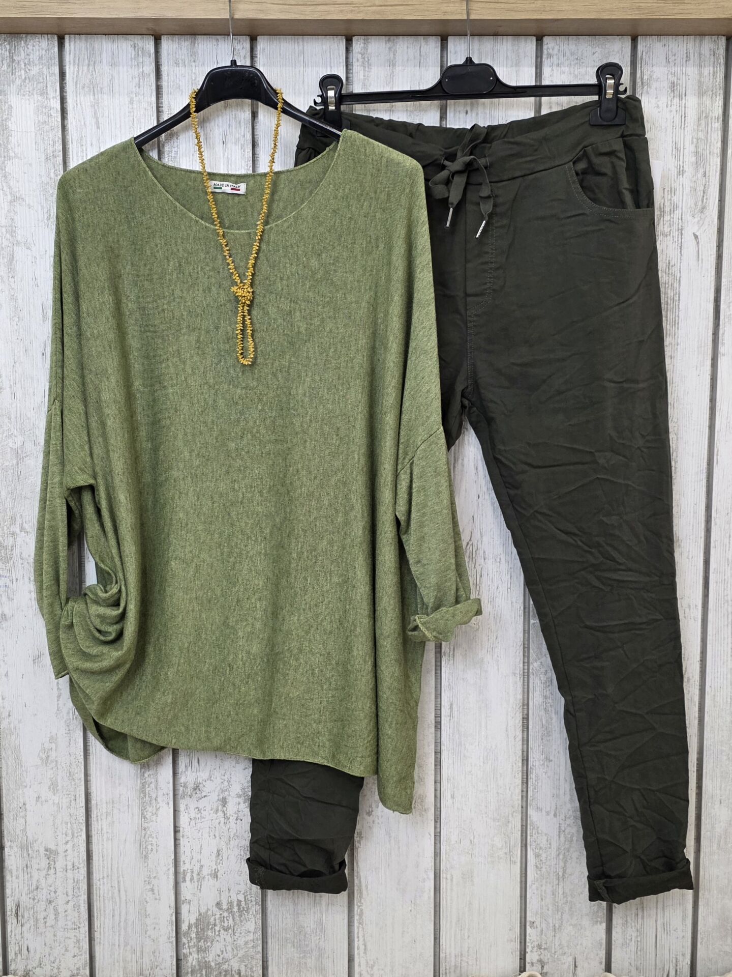 Yeşil Yumuşak Doku Düz Kesim İtalyan Triko Kazak