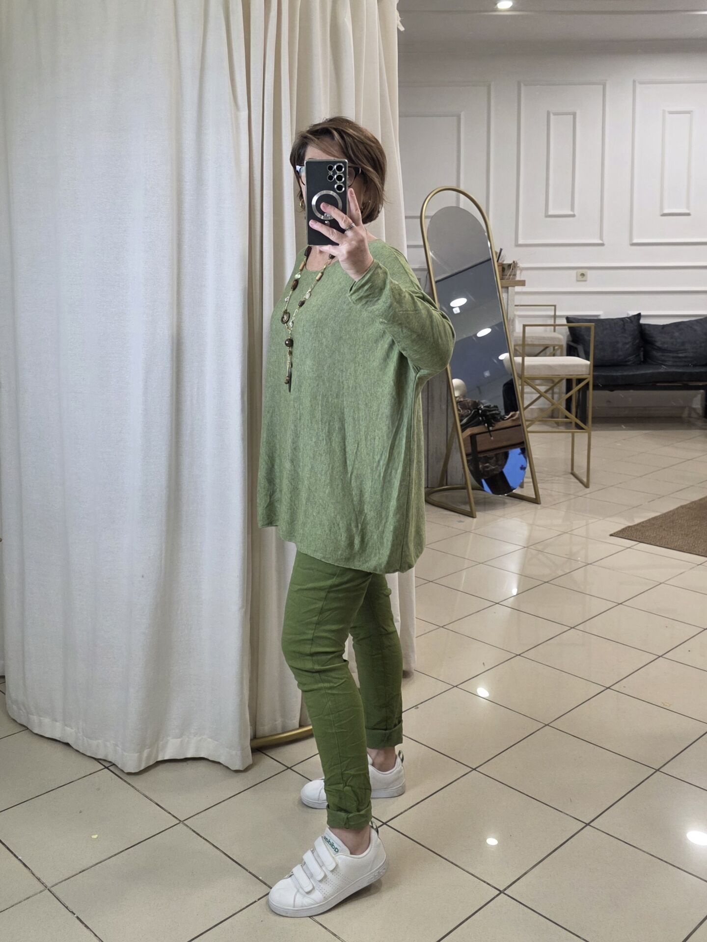 Günlük şıklığınıza sade ama etkili bir dokunuş katmak istiyorsanız, bu İtalyan triko kazak tam size göre. Triko formundaki oversize kesimiyle her bedene uyum sağlayan bu model, yumuşak dokusu ve dökümlü yapısıyla gün boyu konfor sunar. Geniş bisiklet yaka detayı, zarif bir duruş kazandırırken, düz kesimiyle minimal tarzı destekler. Kadınlara özel olarak tasarlanan bu parça, ister jean pantolonlarla ister eteklerle kolayca kombinlenebilir. Hem rahat hem de stil sahibi olmak isteyen kadınlar için ideal bir seçenektir.