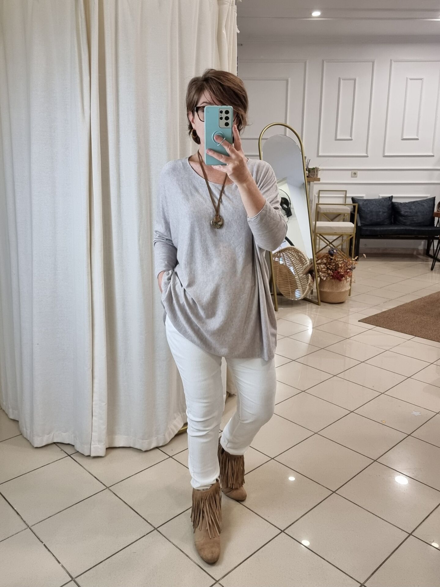 Sadelikten gelen zarafeti arayan kadınlar için bu bej İtalyan triko kazak, stilin en doğal hali. Yumuşak ve dökümlü dokusuyla bedeninize nazikçe oturur; oversize kalıbı sayesinde konforu gün boyu hissedersiniz. Geniş bisiklet yaka detayı ve uzun kollu yapısı, hem minimal hem de modern bir görünüm sunar. Düz kesimi sayesinde farklı parçalarla kolayca kombinlenebilir; ister klasik pantolonlarla ister günlük taytlarla tamamlanabilir. Kadınların gardırobunda yer alması gereken bu triko , zamansız bir kurtarıcıdır.