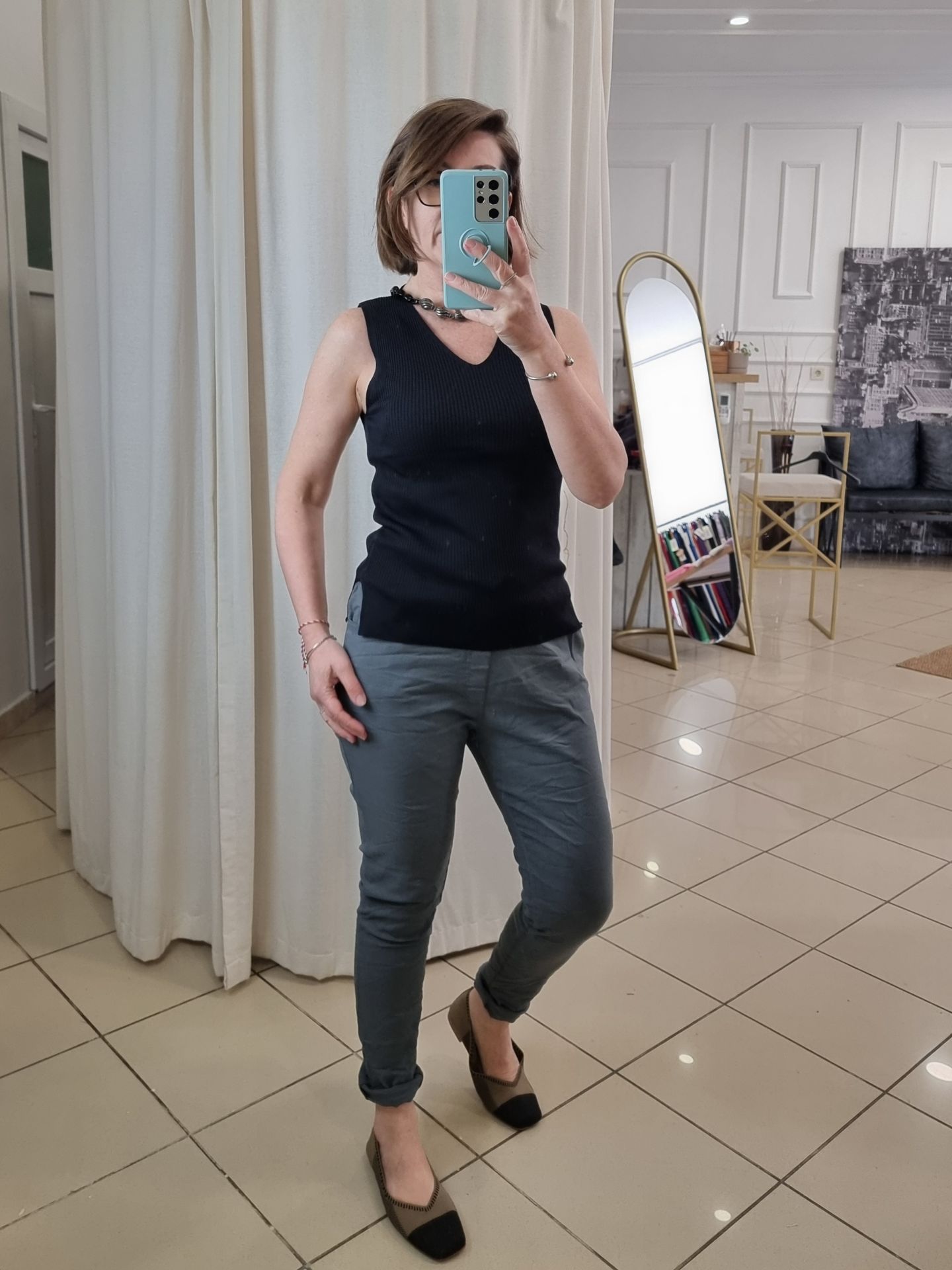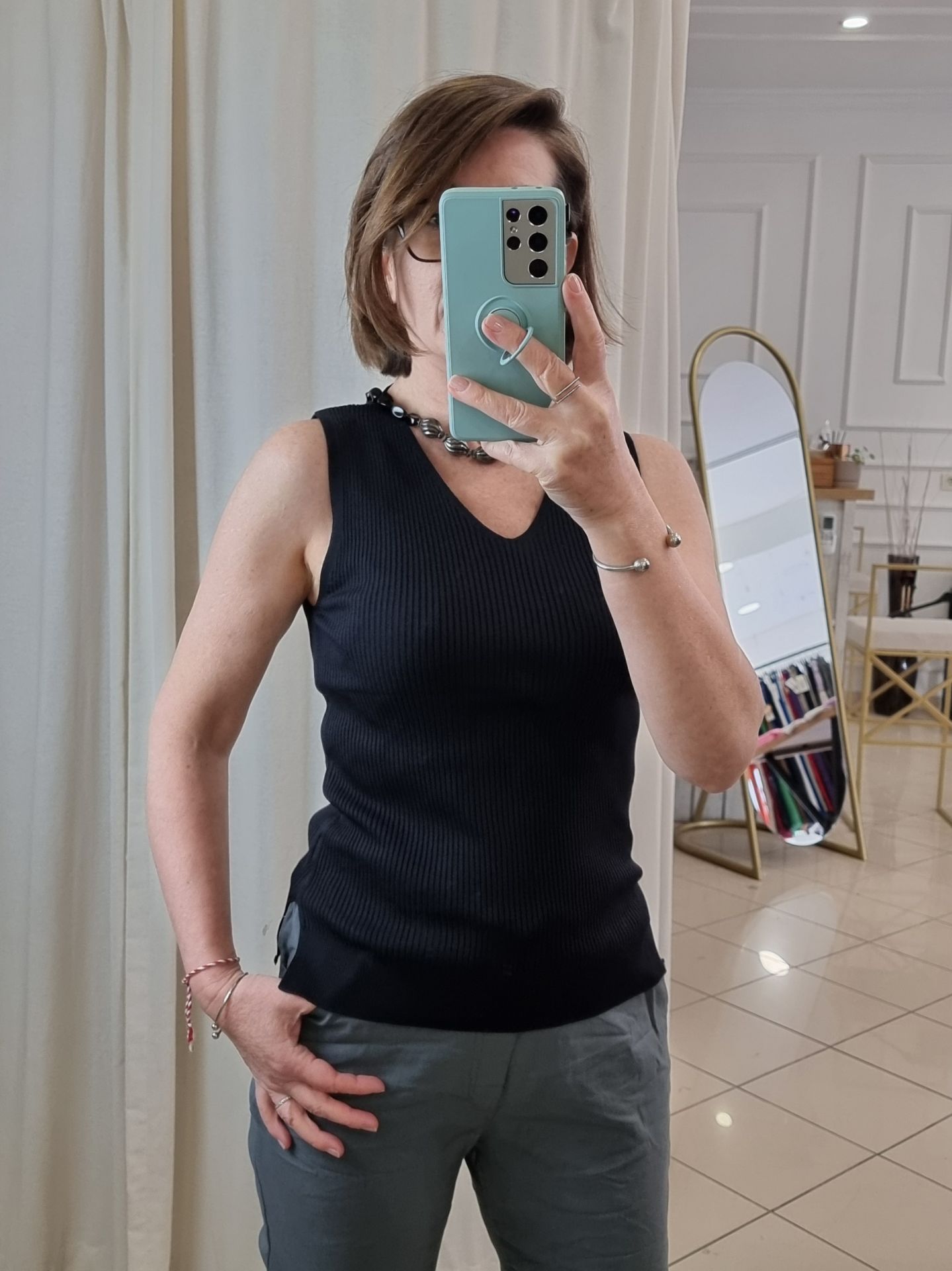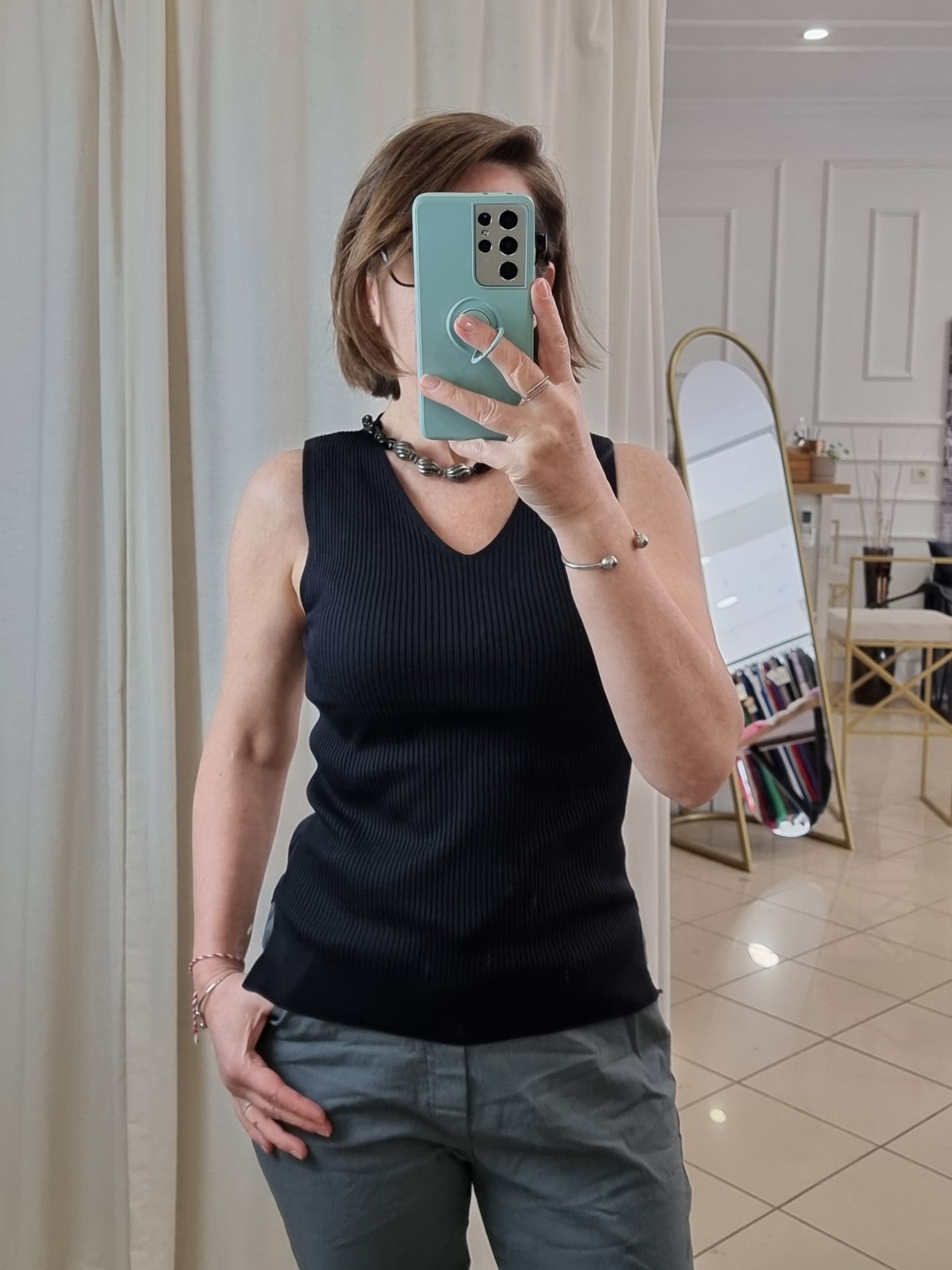 Yumuşacık dokusuyla öne çıkan bu siyah triko atlet bluz, sade ve zarif stilin temsilcisi. Soğuk ip ile örülen esnek yapısı, vücudu nazikçe sarar ve gün boyu konfor sunar. Hem tek başına hem de aynı dokudaki hırkalarla kombinlenerek takım havası yaratır. Triko atlet seven kadınlar için dolabın kurtarıcı parçalarından biri olmaya aday. Günlük şıklığı sadelikle tamamlamak isteyenler için birebir.