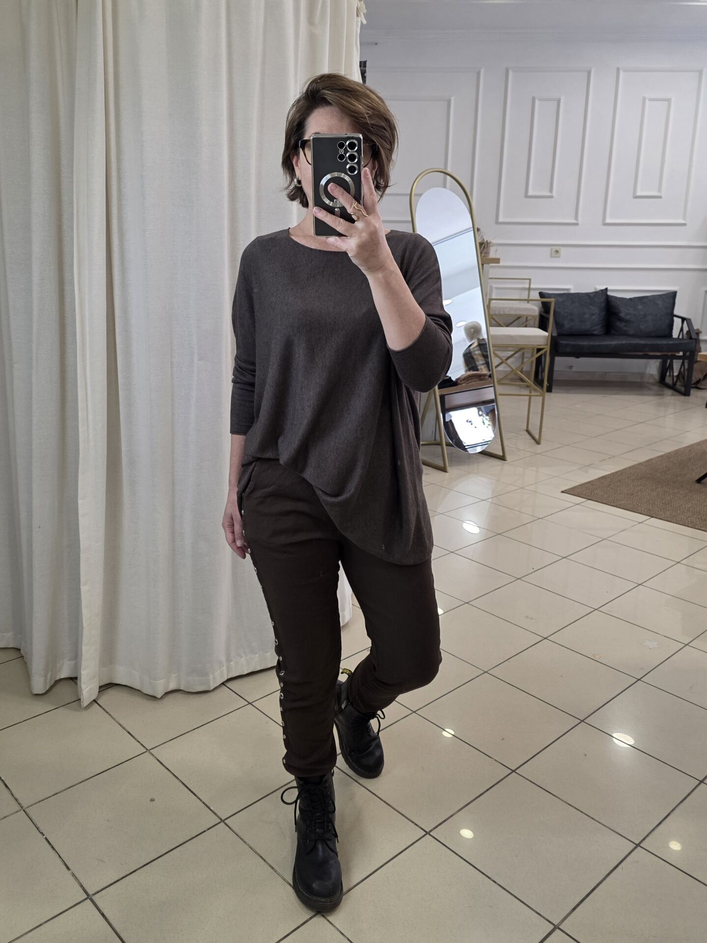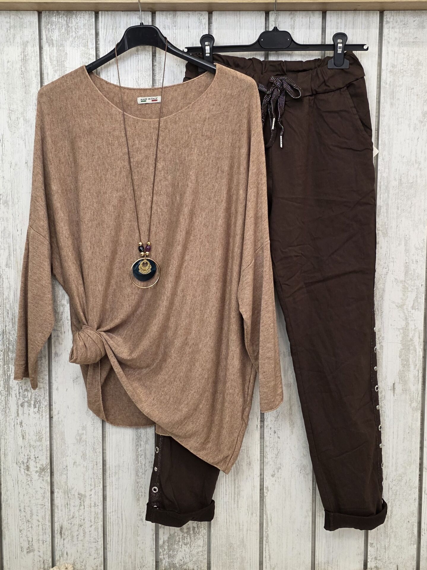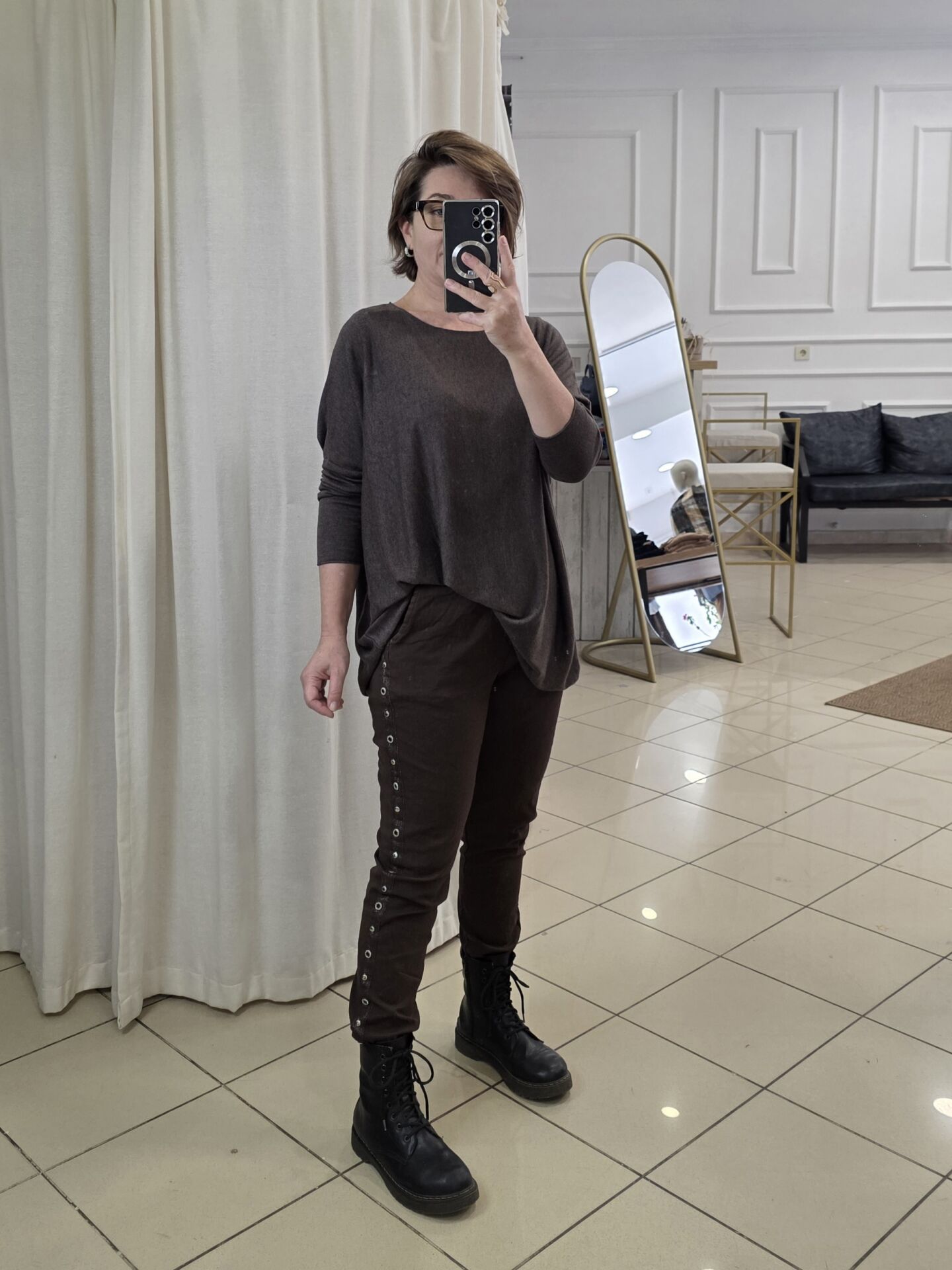 Zımbalı Likralı İtalyan Pantolon Kahve