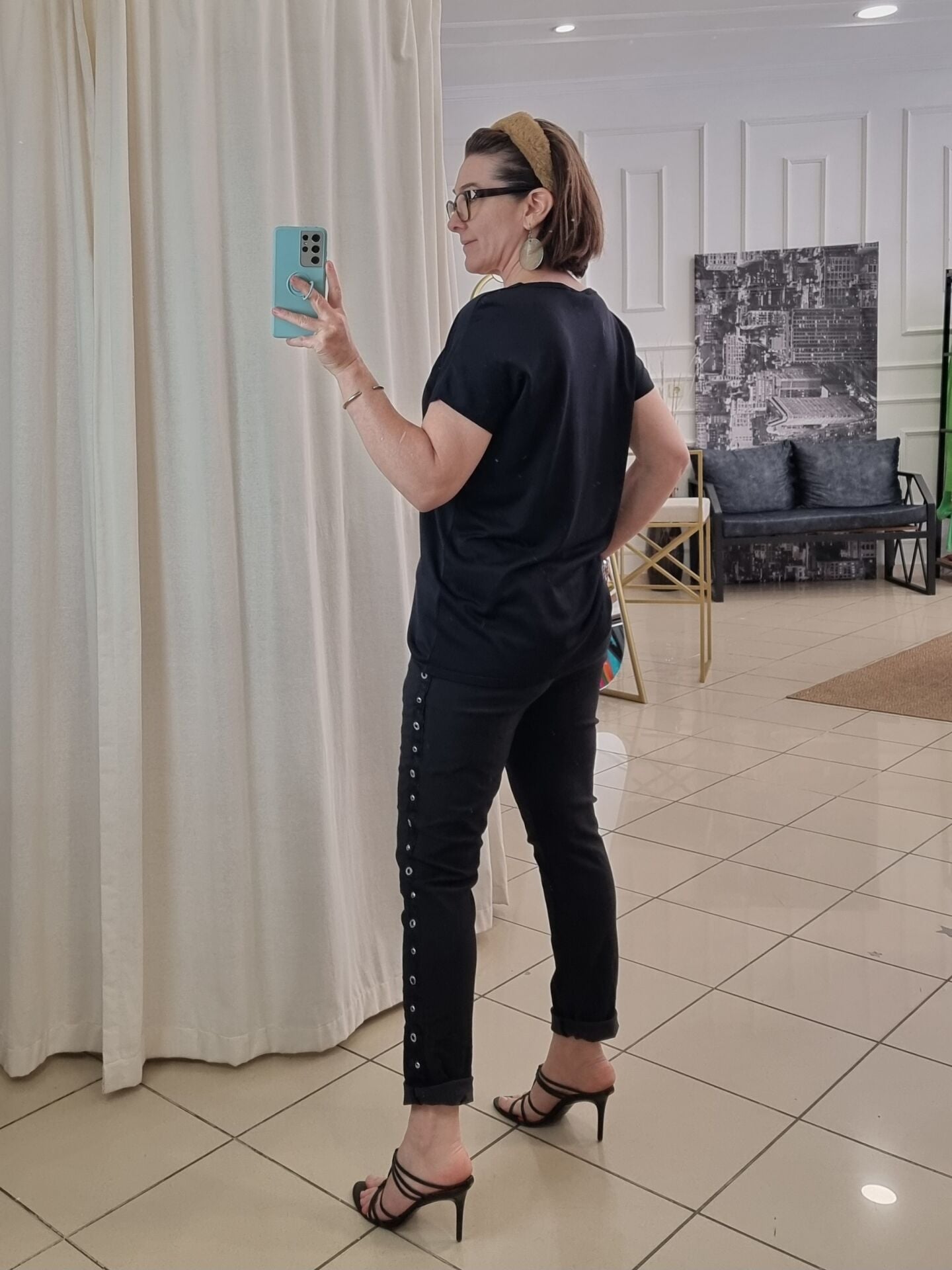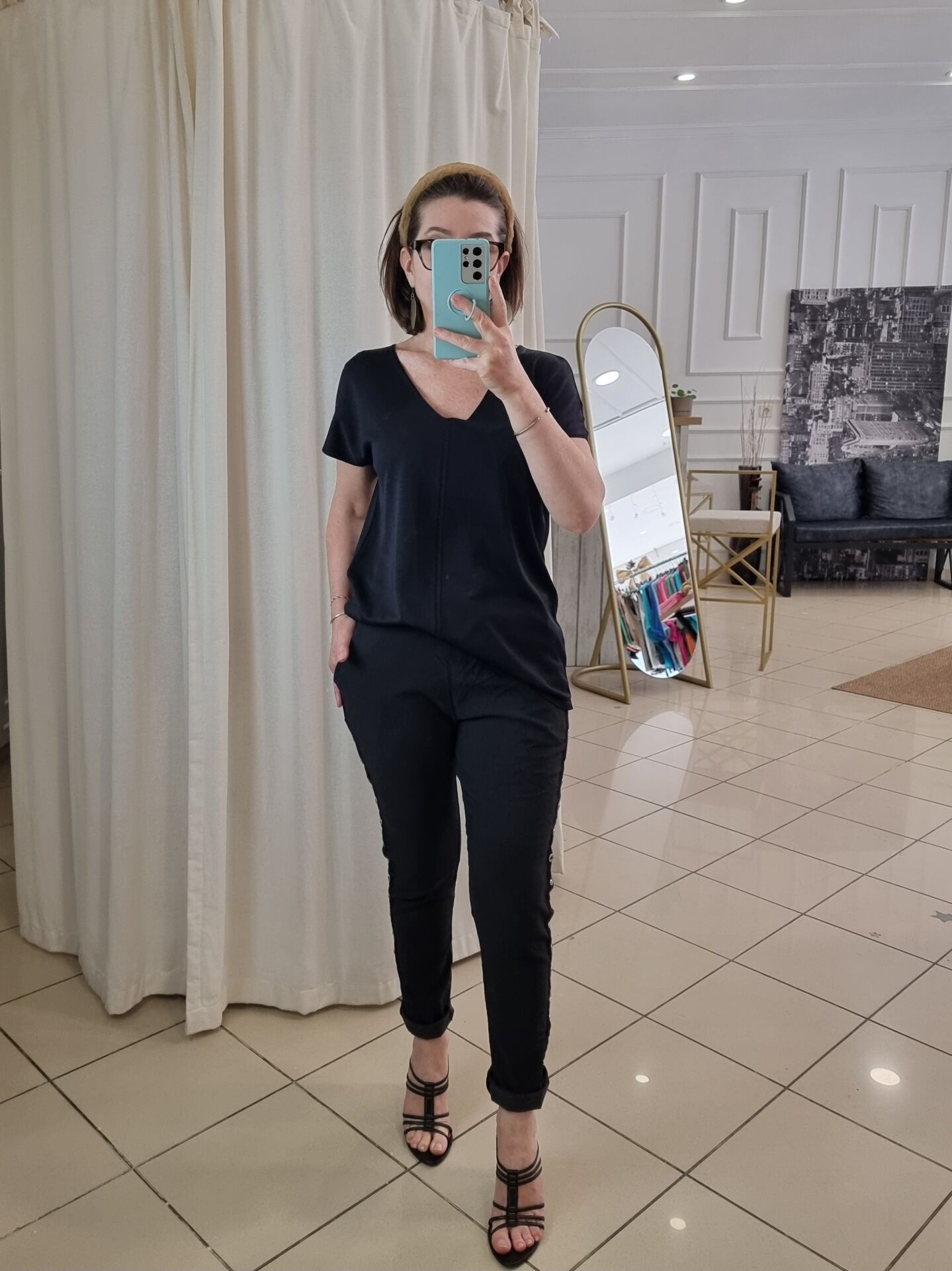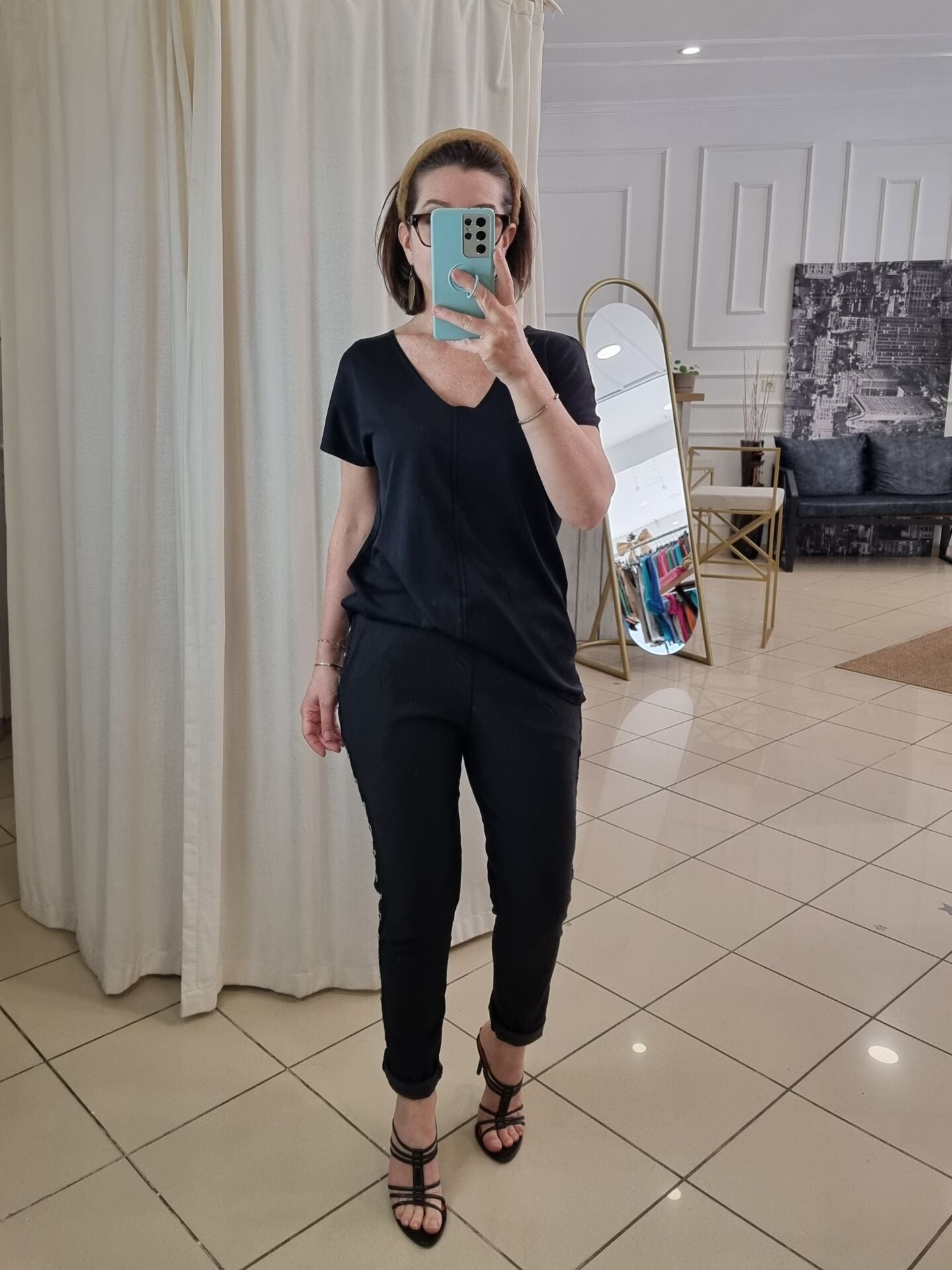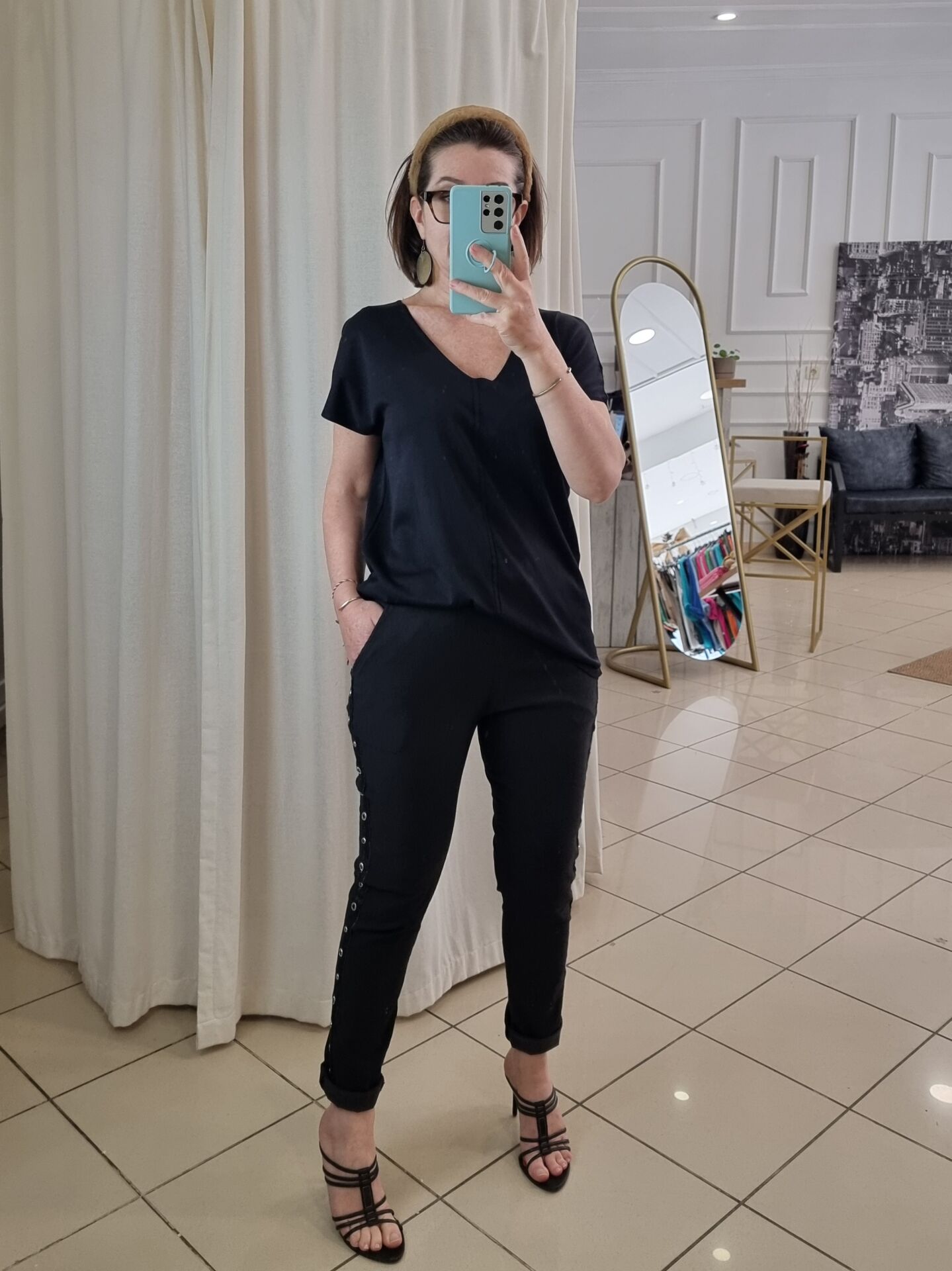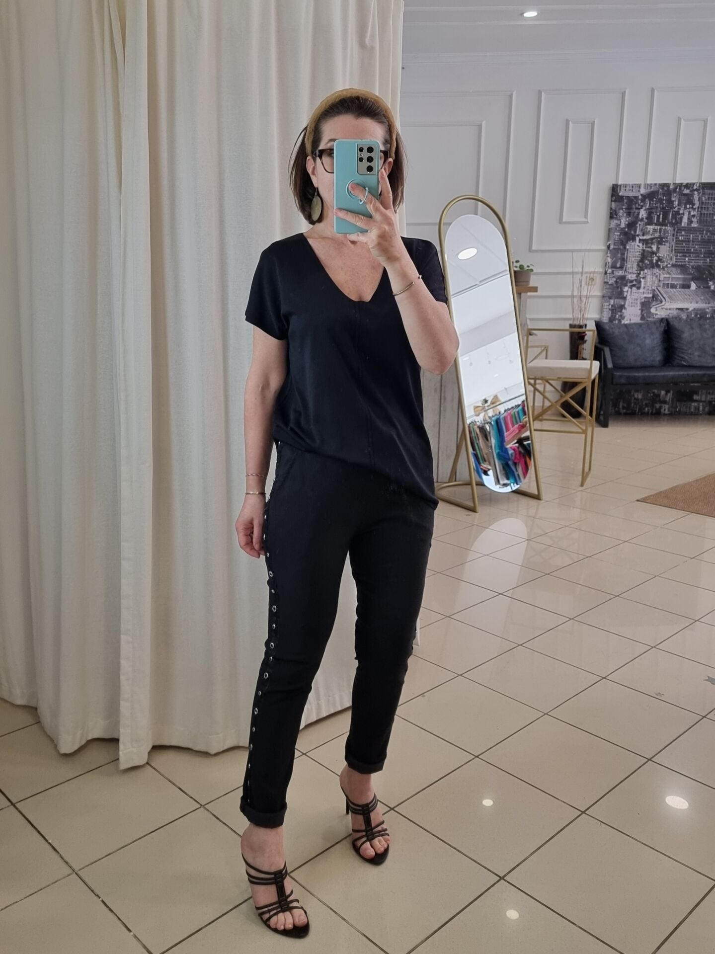 Kenarları zımbalı likralı İtalyan pantolon siyah.